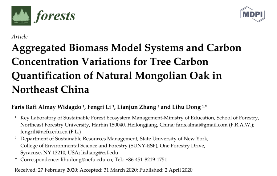 “我的两篇文章分别被瑞士《Forests》和荷兰《Global Ecology and Conservation》2个JCRQ2期刊收录了,谢谢老师的指导。”在收到期刊回复后,法立斯赶紧将这个好消息告诉了自己的研究生导师李凤日教授和董利虎副教授。此外,他还作为第二作者参与了实验室的几位博士学长的SCI英文论文(一篇已被《Forests》期刊接收)。