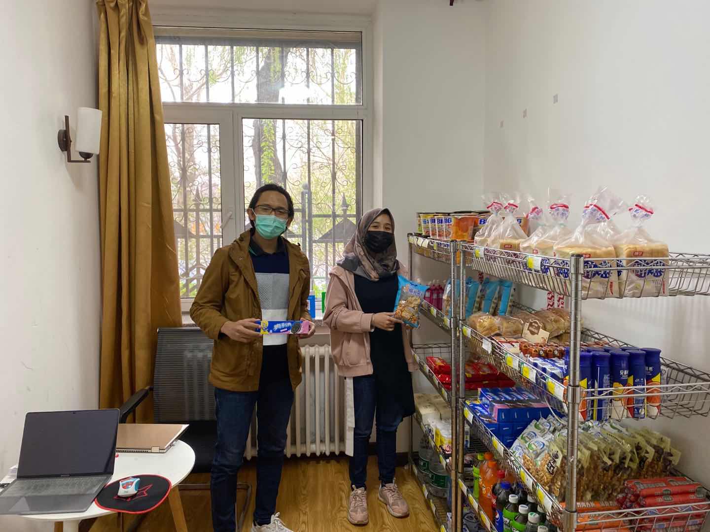 新冠肺炎疫情发生后,学校开始封闭管理,为了保障在校留学生的日常生活需要,国际交流学院特地在宿舍区临时开设了微型超市。学院征集微型超市志愿者的倡议发出后,法立斯和娜迪亚作为国际学生联合会的学生干部,积极响应,率先加入志愿队伍,投入到“抗疫”的服务工作中。