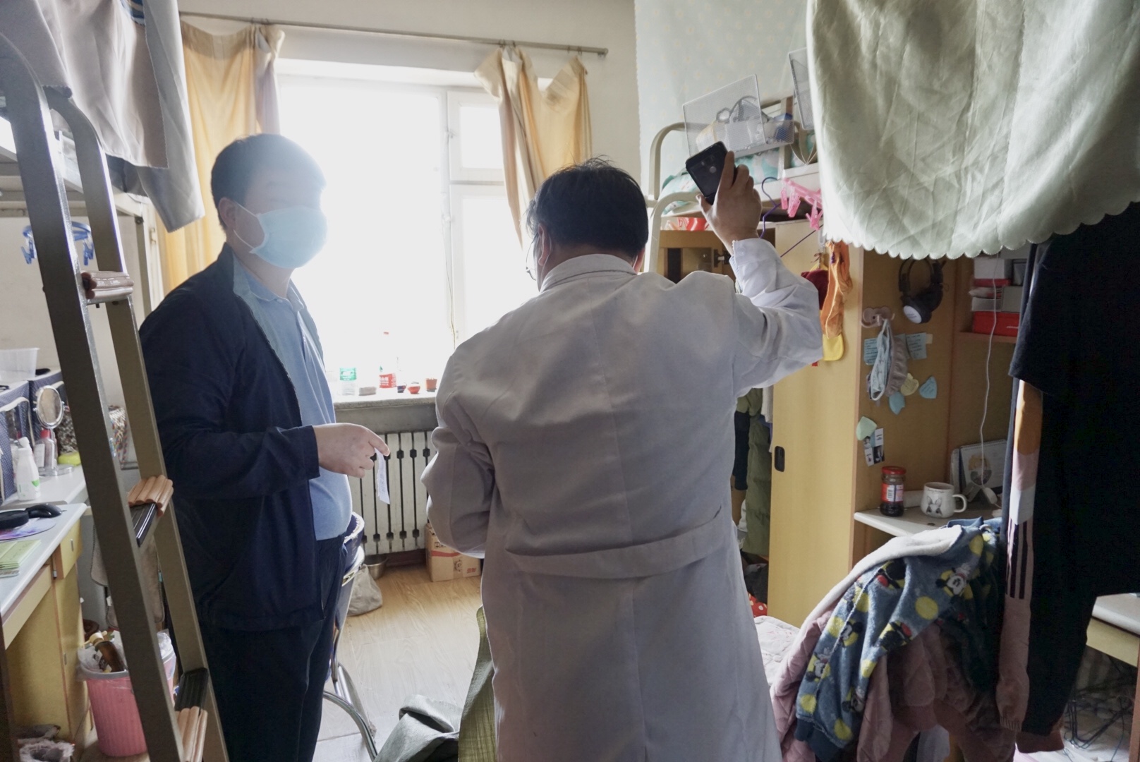 根据学生居住楼宇情况,学院领导和教师分成三组,每组两人分别进入寝室后,一人负责与学生在线视频沟通,另一人按照提示拿取相应物品。本次学生行李搬运涵盖学生2号、6号、9号公寓,由于校园整体规划建设,公寓电梯全面停电,且学生们的寝室均分布在10楼、11楼等较高楼层,为了搬运行李,教师们多次上下,跑得气喘吁吁。学院教授杨逢建说:“虽然累点,但把学生的东西安顿好才是最主要的,这点累也不算什么!”在宿管工作人员的协助下,教师们穿梭于各个寝室,顺利将同学们的生活用品打包取走,并运送到隔离指定房间。当天任务完成后,教师们纷纷表示:即将要看到自己的学生了,很是开心,在特殊时期我们力所能及为他们做点什么都是值得的。