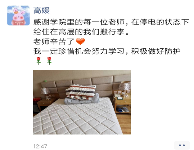 本次行李搬运共历时5小时,学院领导和教师共32人参与其中,顺利将46名学生的行李搬运到指定地点。教师们的热情与付出就像东林午后阳光的温度,温润着每一名东林学子的心房。学生们通过与自己导师的视频及其他方式表达了感谢,感激学校和老师们的辛勤培育、帮助,并表示会严格遵守学校相关纪律要求,注册好龙江健康码,在返校过程中加强自我防护,确保安全返校,也将积极配合学校后续核酸检测和隔离工作,严格遵守实验室制度,刻苦钻研,分秒必争,学有所成为国家社会发展作出自己应有的贡献。