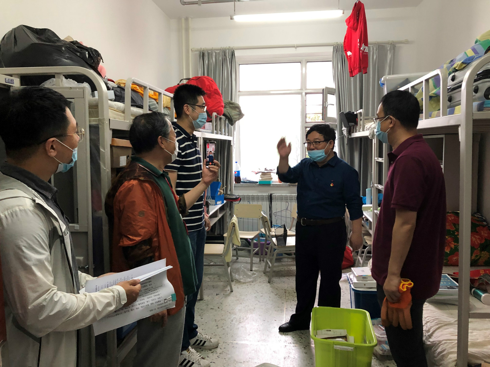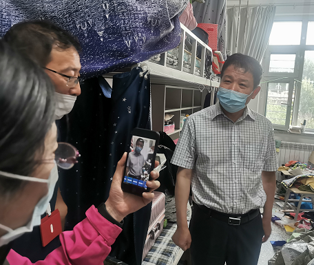 党委书记张志坤、校长李斌在寝室与毕业生通过视频连线