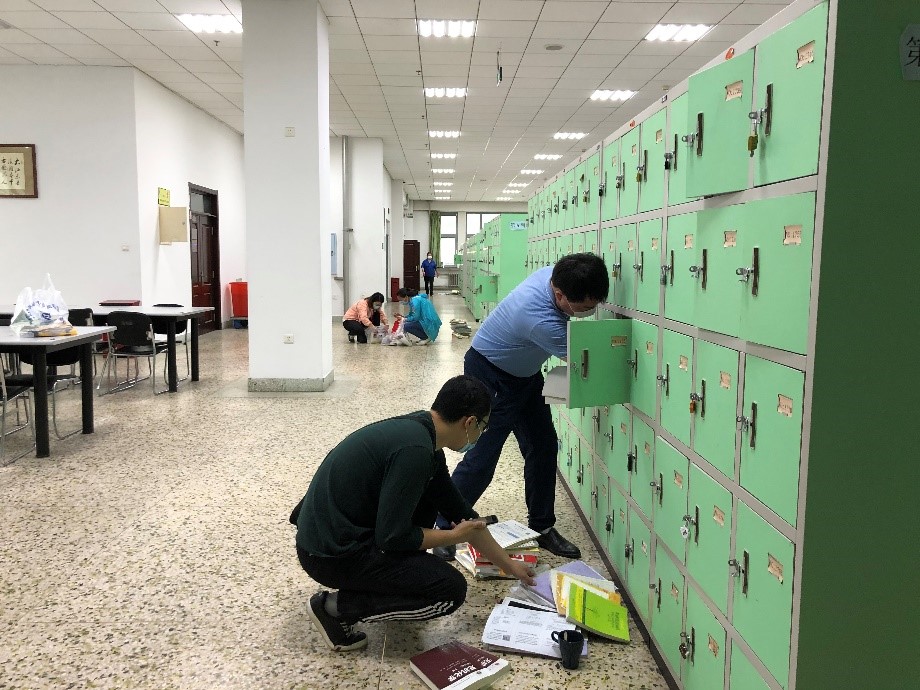老师们在图书馆整理学习用品
