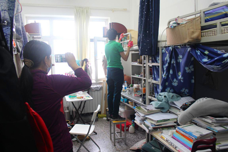 辅导员董天贺老师经过精心的准备,保证了打包行李各项工作有条不紊,他说“此刻五味杂陈,四年有太多的酸甜苦辣,就像我在满地的“垃圾”中找到这一毛一毛的硬币,这是四年的积累,那一刻激动不已,虽然钱不多,但却溢于言表,因为帮学生找到了。或许这就是信任!”或许时间太久,很多同学已记不准东西放在哪里,老师们一遍遍细致询问,耐心找寻;或许同学们又突然想起有什么东西还在工作室,老师们毫无怨言,欣然折返,李羽佳老师笑说,“最高纪录一个娃装了17个袋子……”。张捷老师克服身体的不适,在视频里饱含深情的让同学们放心,“再苦再累也愿意,希望毕业生们能够牢记园林使命,祝福大家前程似锦!”点点滴滴,毕业生同学们看在眼里,感恩在心,16级林悦同学发朋友圈讲到,“感谢老师们帮我们收拾行李,真的太辛苦了。也真的太匆匆就要和1619宿舍说再见了,希望大家以后都会越来越好”。