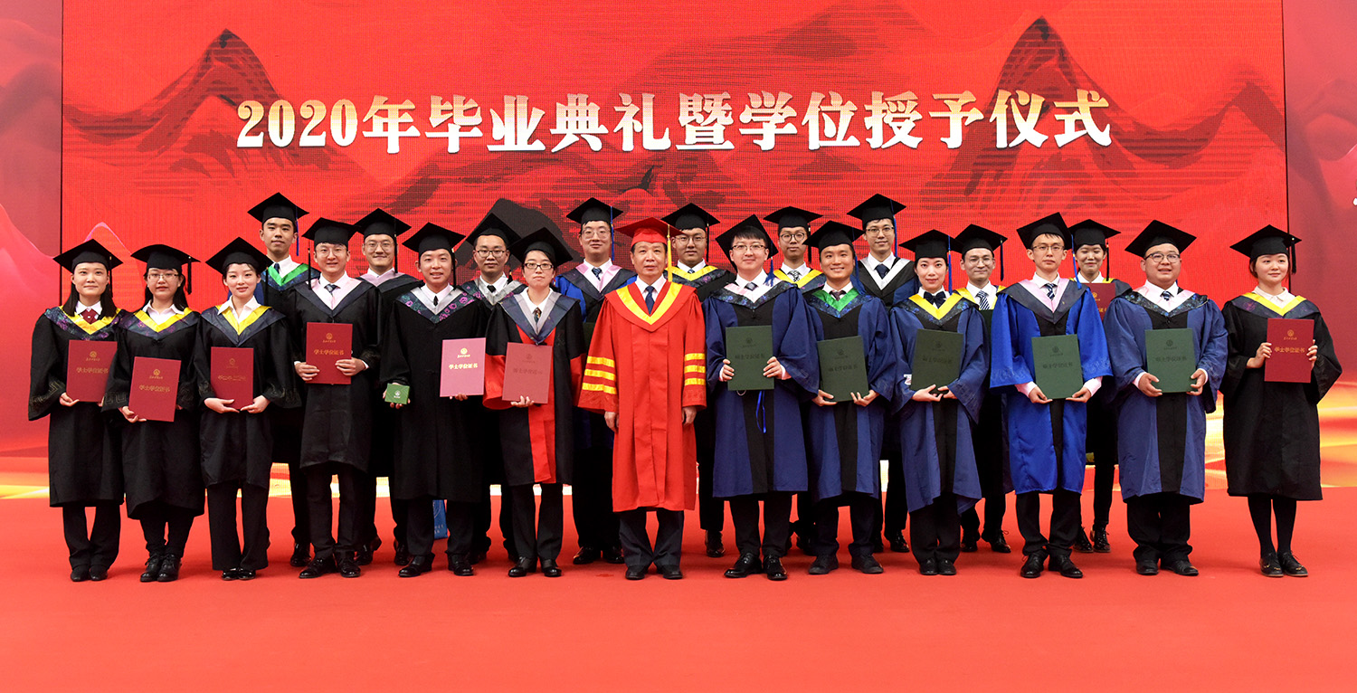 毕业典礼结束后,校领导与毕业生代表合影留念。2020届毕业典礼在简单浓情的氛围中落下帷幕。