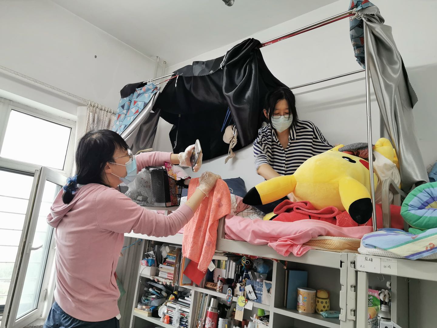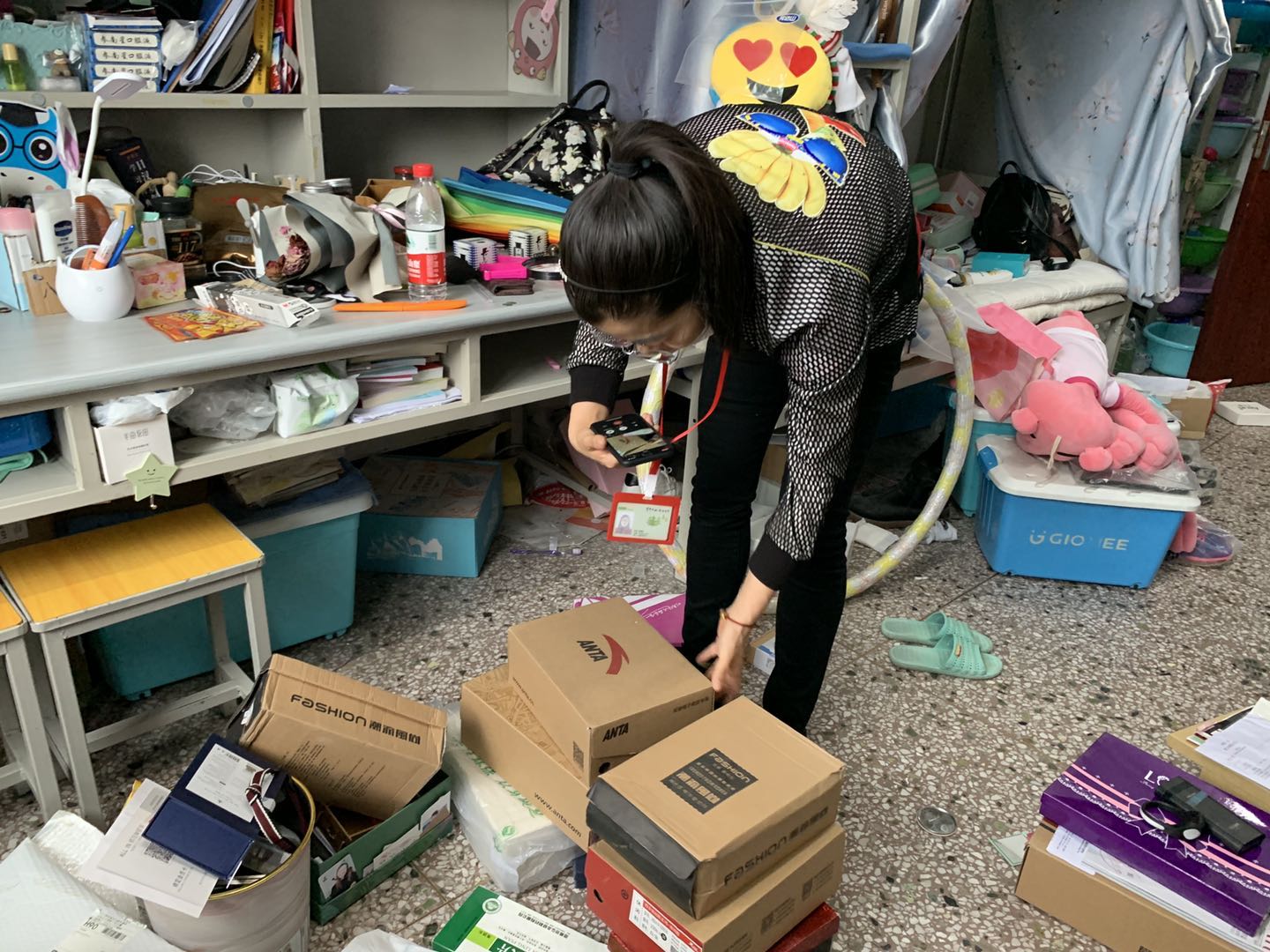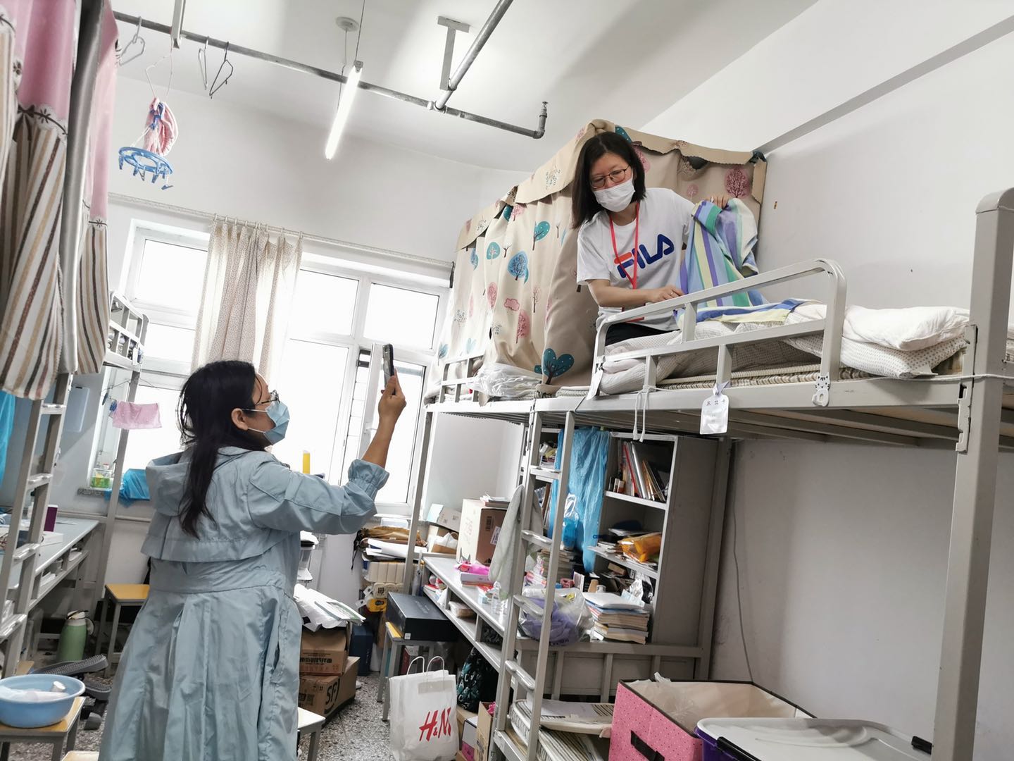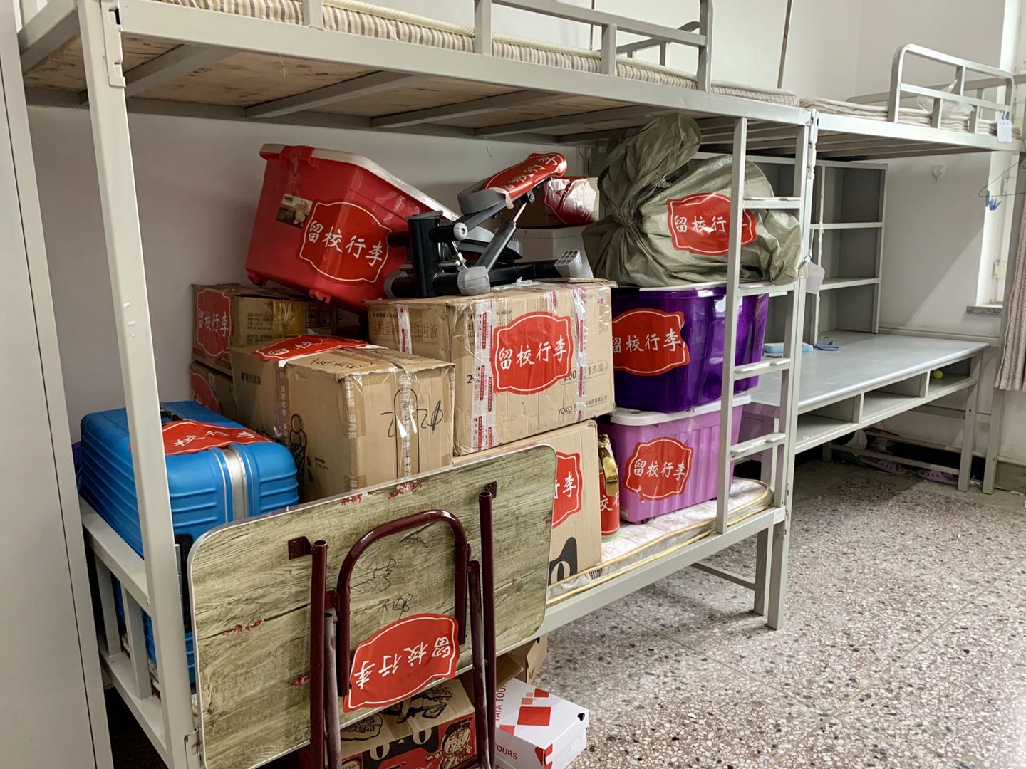 寝室的床铺上摆放着要为毕业生邮寄的行李,大到电脑、乐器、玩偶,小到一支笔、一本书,每一件物品都由老师们悉心整理、用心打包,确保毕业“寄”顺利完成。每一间寝室内都有老师们忙碌的身影,每一件包裹都充满了温暖,都是老师送给毕业生们的“礼物”。一件件物品、一箱箱行李,满载四年的回忆,承载着美好的祝愿与期待。