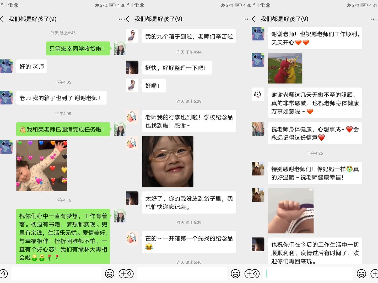 六月,毕业季。将别离,更思念。受疫情影响,2020届毕业生无法全部返校,毕业生们留在寝室的行李物品成了他们最关心的事。按照学校总体部署要求,外国语学院高度重视、积极谋划、稳步推进,切实做好毕业生的行李邮寄工作。学院按照“一对一、点对点”帮扶原则,提前部署、高效对接、耐心协调,截止6月24日,已顺利将169名本科毕业生的物品妥善整理和寄出,目前部分学生反馈行李已经收到,并纷纷表示对母校的感激之情。
