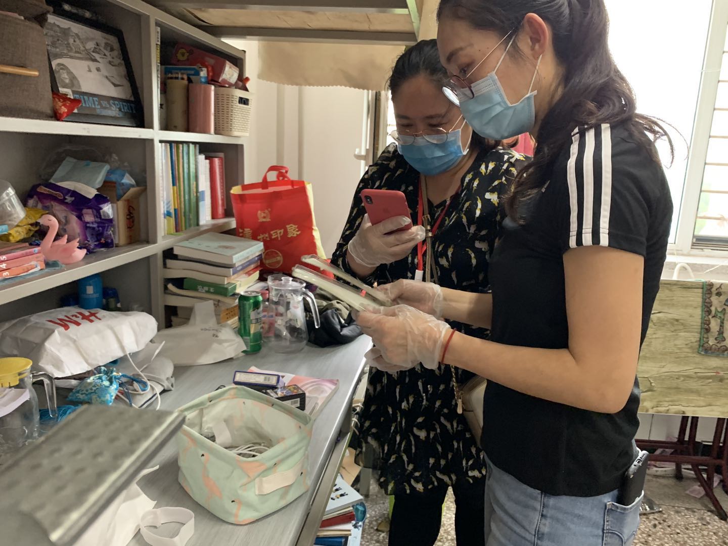 “放心吧,老师一定帮你装好”、“这些已经收拾好了,一会儿寄走”、“邮寄地址一定要确认好啊”……这些声音从每一间寝室内传来,那是老师在和毕业生们视频通话。拍照、弯腰、整理、起身、核查。老师们全程与学生视频连线,在学生的“导航”下,一件件精准“定位”物品,反复确认,精心整理,确保物品准确齐全。宿舍内爬上爬下,走廊内穿梭不停,楼梯间来来往往,顶着高温,汗水淋漓,老师们忙得热火朝天。在每件包裹封口前,老师们将学校和学院精心准备的毕业礼物装入包裹,带着对同学们的关爱与牵挂一一寄出。