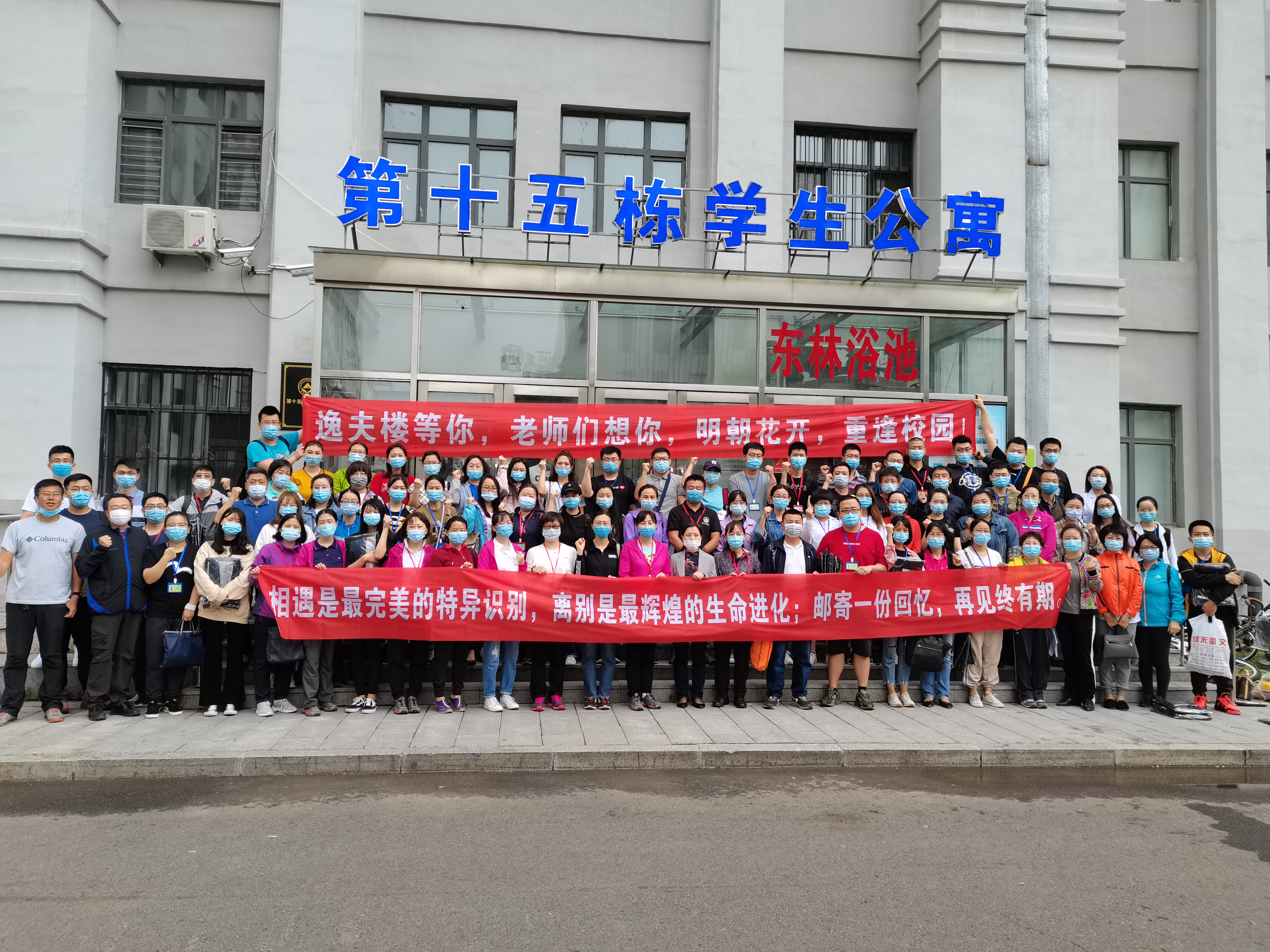 在学院党委的倡议下,学院69名老师、35名研究生志愿者报名参加了此次 “毕业寄”行李打包大片的拍摄。东林生命的qq群上被“我报名”三个字刷屏,郑宝江老师说:“我隔离时间到了,我可以为毕业生出一份力。”王宏伟老师带着腰伤,本来要安排后勤工作,但他带上护腰,仍然坚持在一线。在这个临行的日子,老师们只希望自己的努力可以成为一点光芒,温暖学生前行的路。