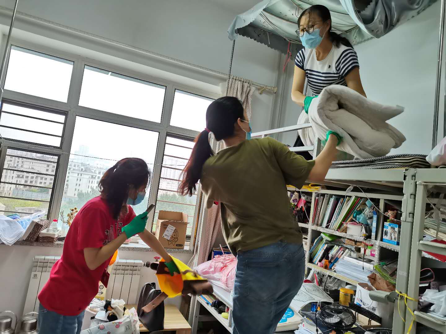 打包多人寝室的物品,是一项纷繁复杂的工作。辅导员李晨老师细心统计了物品清单,老师们视频导航,研究生师哥师姐精准定位,为了满足大家的小心愿,老师们真是用出了洪荒之力。寻找小仙女的绿植、寻找图书馆的图书、寻找一封珍贵的信件……老师们的汗水打透了衣服,尘土飞扬的寝室让过敏的老师一直打喷嚏;有的老师腰扭了,有的老师脚崴了,有的老师把组会推掉了……不管怎样,“一定要把温暖和爱打包好”!