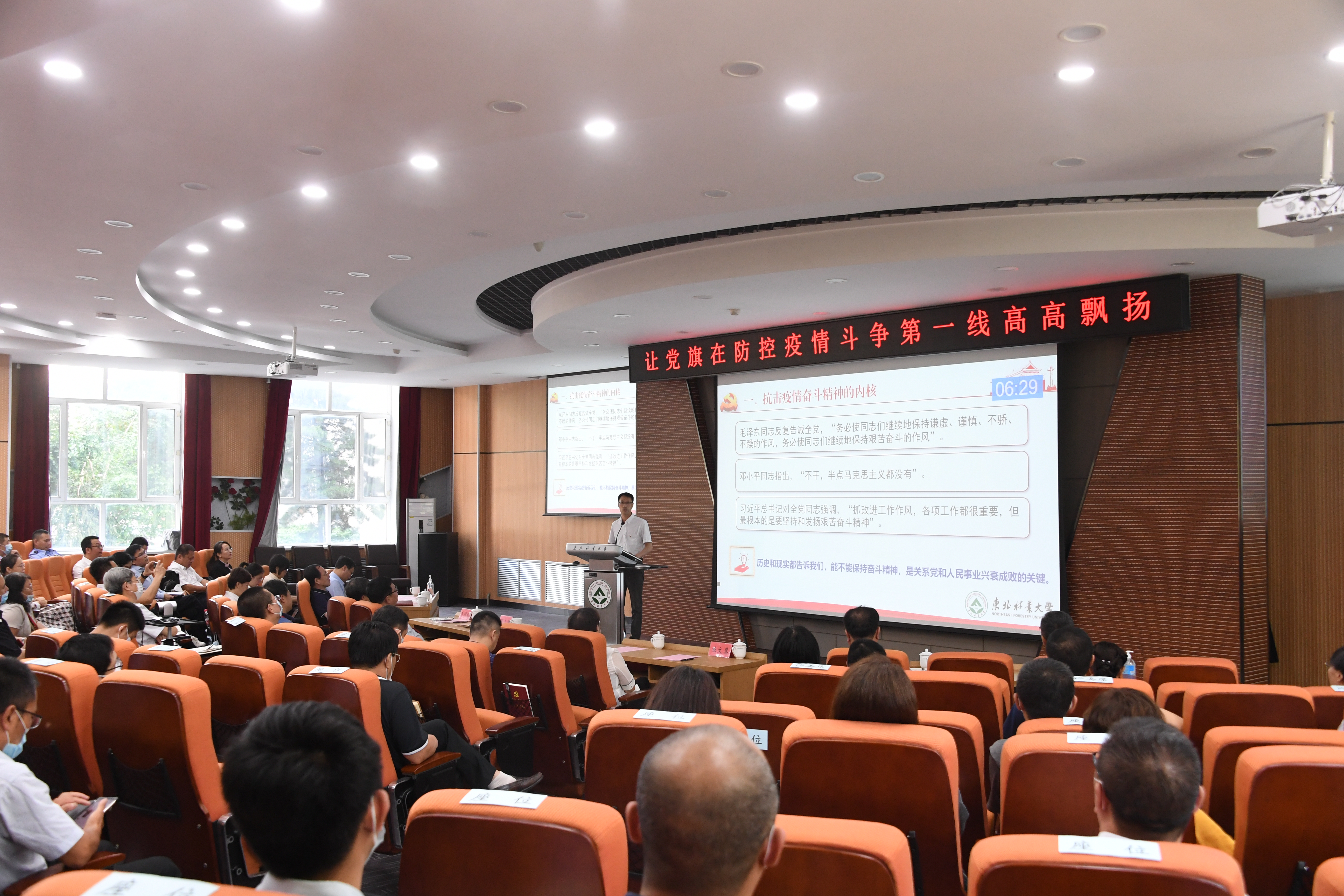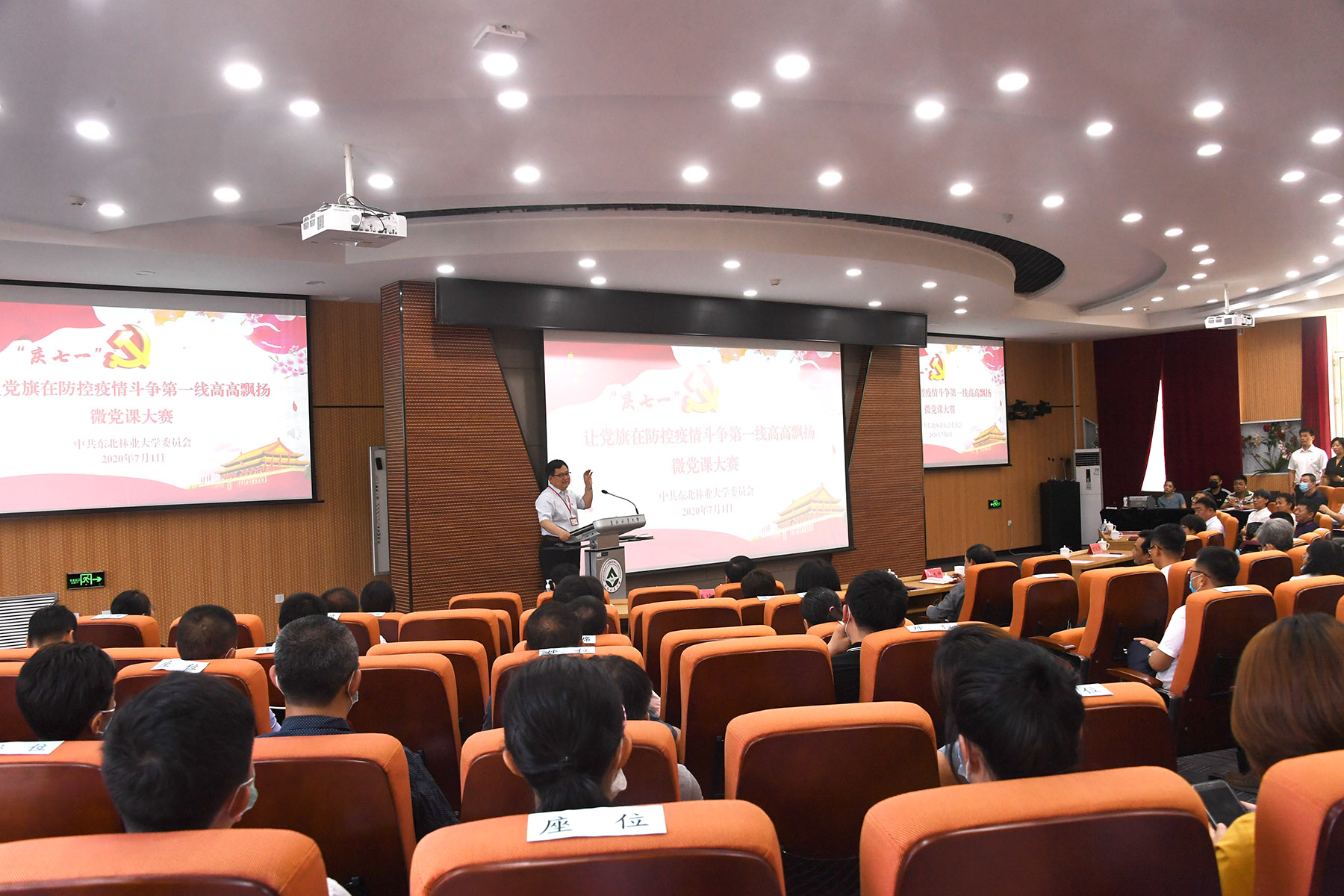 为了庆祝中国共产党成立99周年,根据教育部、黑龙江省委教育工委和学校党委关于在常态化疫情防控中持续发挥基层党组织和党员作用的部署和安排,7月1日,我校在奥林学院101会议室举行了“让党旗在疫情防控斗争第一线高高飘扬”微党课大赛。学校领导,各二级党组织书记、副书记,党委各部办班子成员及部分党支部书记代表在现场收看了比赛,200多位支部书记通过钉钉直播的方式在云端观看了比赛。