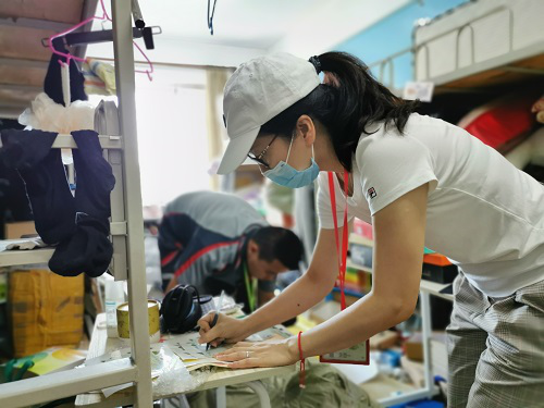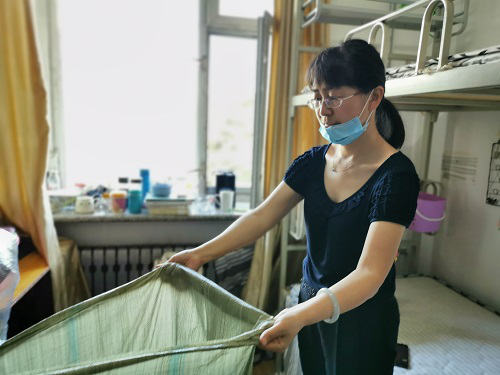 教师党员为毕业生打包行李
