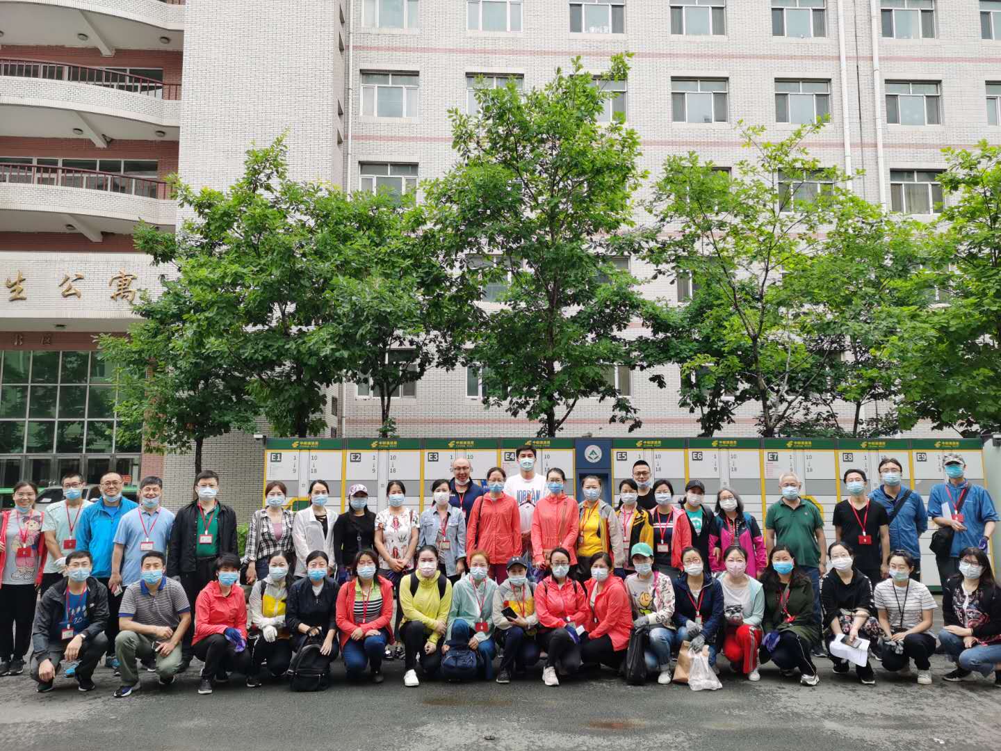全体教师集合在11B公寓楼下,准备进楼为学生们收拾行李