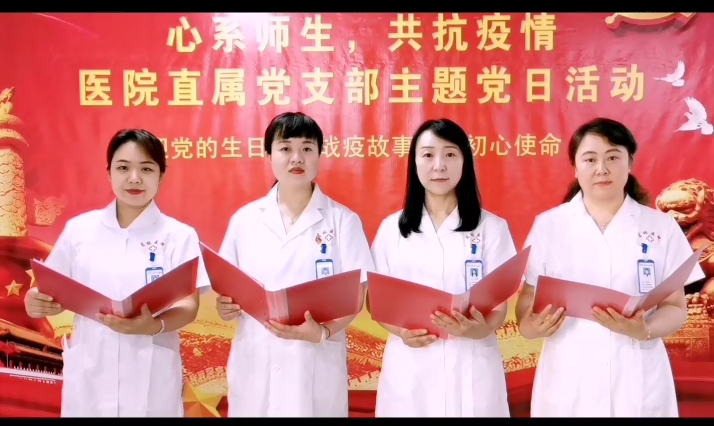 此外,医院于6月18日至7月1日期间还开展了以“心系师生,共抗疫情”为主题的迎“七一”庆党的生日微视频征集竞赛活动。活动以科室为单位组建了参赛团队,每支参赛团队由一名共产党员及民主党派人士、无党派群众共同组成。活动期间收到微视频作品8部,包含歌曲、手语表演、三句半、诗歌朗诵等,并采取医院钉钉工作群进行了展播,大家通过钉钉群投票功能投票评选出了医院职工心目中的优秀作品,最终由护理部选送、全体美小护集体改编创作的《致敬最美逆行者》夺冠。在7月1日下午的颁奖仪式中,许多人观看参赛作品后感动落泪,这其中包含了对逆行者的敬畏,更有心底的共鸣。寒冬中巡视消杀的不畏严寒,毕业生返校的不畏酷暑,高速公路卡口测温的不畏深夜,隔离教师医学观察的不畏繁琐……在守护全校师生健康、做最美逆行者的的路上,他们的身影从不间断。
