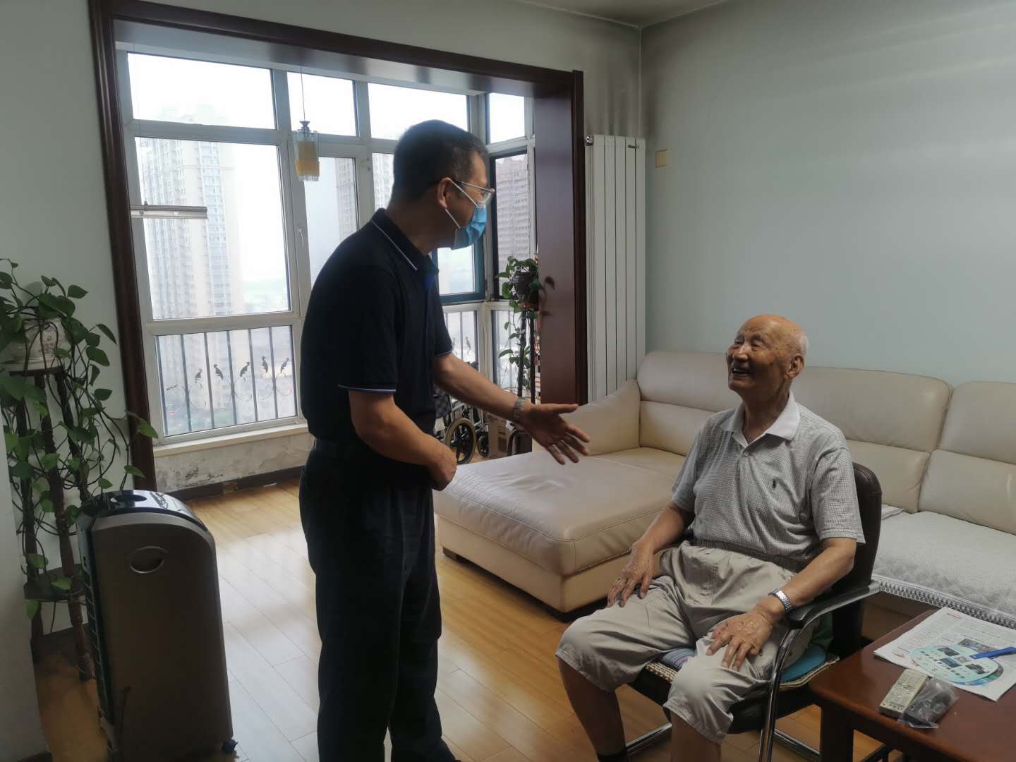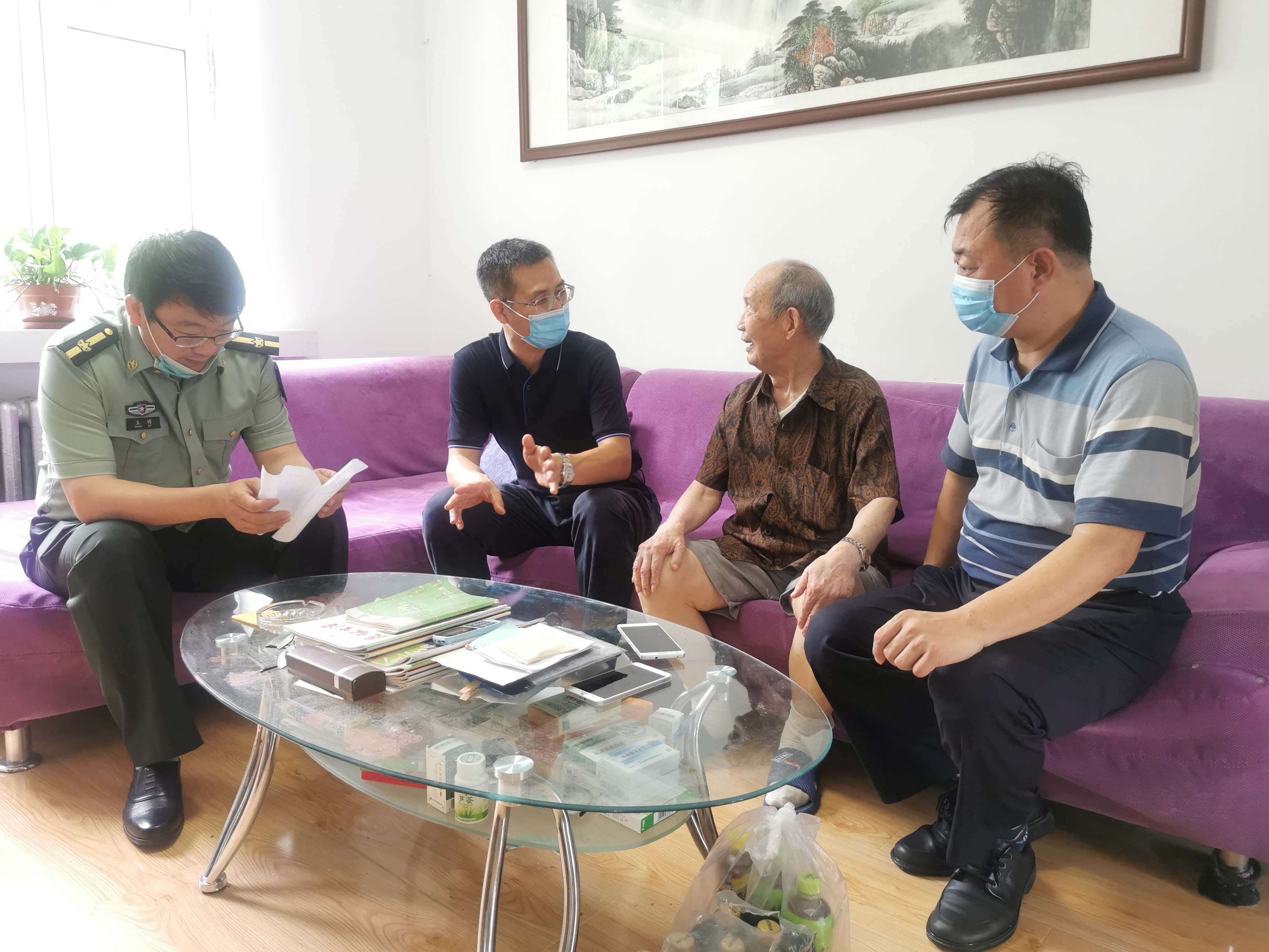 7月31日上午,雒文虎副校长又带领离退处、学工武装部相关人员来到学校离休复转军人老同志家中开展走访慰问。雒文虎副校长先后来到离休老干部、新四军老战士李雪菲老同志,解放军六十二军老兵青郁老同志,抗美援朝军医王成绵老同志的家中看望。雒文虎副校长向老同志们表达了节日的问候,并与他们亲切交流,重温革命岁月,详细了解他们的生活情况和身体健康情况,感谢他们为民族解放、国家独立、社会进步、学校发展做出的积极贡献。李雪菲老同志今年已经百岁高龄,聊起抗战的岁月和学校建校之初的场景时思维清晰,精神矍铄;青郁老同志讲述起自己在部队的经历和今年的疫情时,感慨地说国家真的强大了,当今的年轻人要格外珍惜来之不易的和平和幸福生活;王成绵老同志回忆起抗美援朝时艰苦而又难忘的岁月时,依然激情洋溢,满怀骄傲。雒文虎副校长表示,老同志们是学校建设的参与者和发展的见证者,嘱咐老同志们要保重身体,安享晚年。同时也要求相关部门做好老同志们的服务工作。
