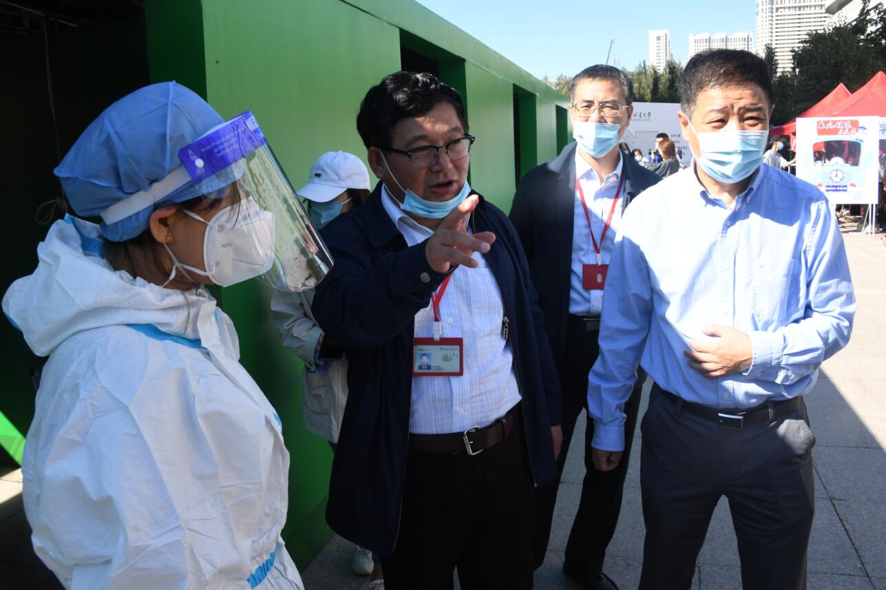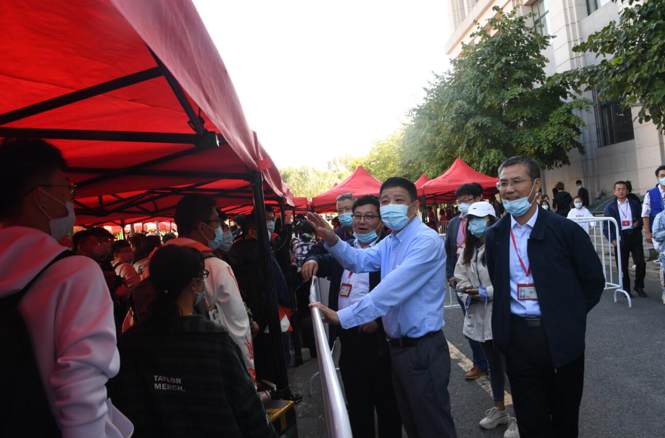 校领导一行来到南校区文博楼前的迎新场地,查看了核酸检测通道的情况,慰问了校医院的工作人员。学校领导叮嘱,核酸检测既要提高效率,又要保证严谨,切实保障全校师生的安全。