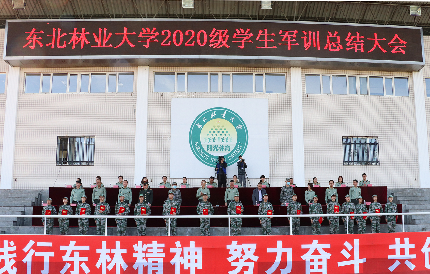 沙场秋点兵,热血致青春。9月26日9时,学校田径场上天高云淡、军旗招展。东北林业大学2020级学生军训总结表彰大会在此隆重举行。全体参训学生以拼搏的精神、过硬的素质和优异的成绩,展示了此次军训的丰硕成果,为“大学第一课”交上了一份满意答卷。