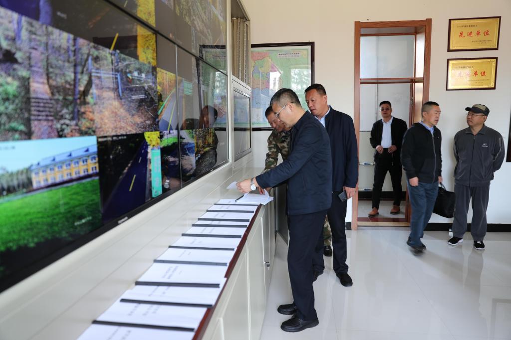 在林场林政防火指挥中心,凉水实验林场场长关大鹏向校领导介绍了林场视频监控系统建设历程及现状。雒文虎副校长肯定了林场在技防方面的投入及做法,要求林场进一步做好规划,加大技防投入,用高科技手段增强林场防灭火能力。