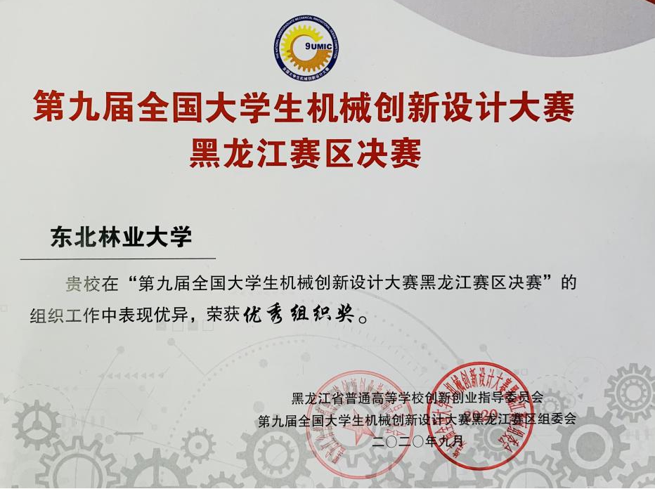 近日,第九届全国大学生机械创新设计大赛黑龙江赛区比赛结果公布。我校整体成绩居全省前列,获得优秀组织奖,我校有5件作品获实物组一等奖、10件作品获实物组二等奖;另有1件作品获慧鱼组一等奖。