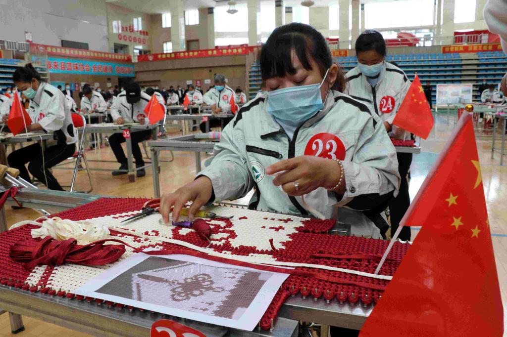 来自泰来县扶贫车间的60名选手参加了此次比赛。他们中有脱贫户,有残疾人,还有低保户。只见他们不停地穿线、钩针,一双双巧手上下翻飞,采用不同的编织技巧,一条条的编织线被编织出一道道笔直或蜿蜒的线条,形成一幅幅优美的作品。在比赛进行18分52秒时,第一名选手完成了比赛。