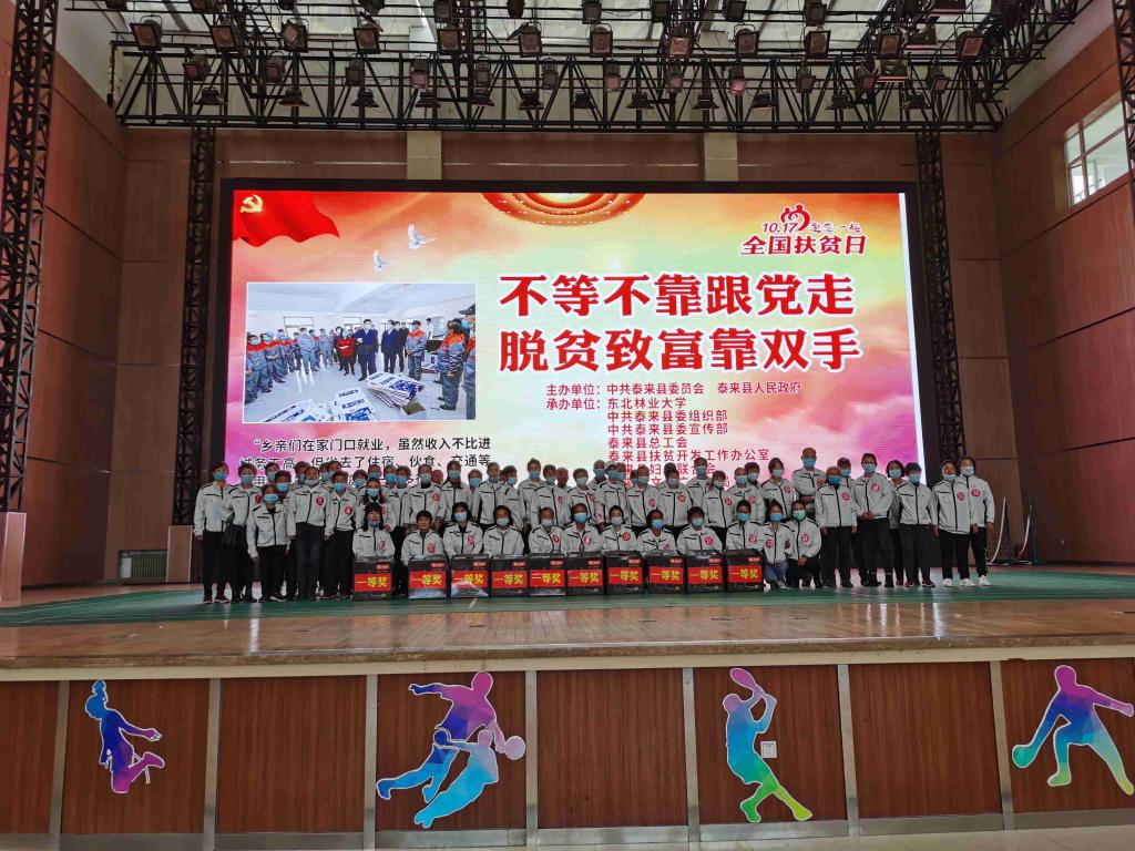 2020年10月17日,学校与泰来县委县政府共同在泰来县新时代文明实践中心举办第二届“东林杯”扶贫车间手工编织大赛。