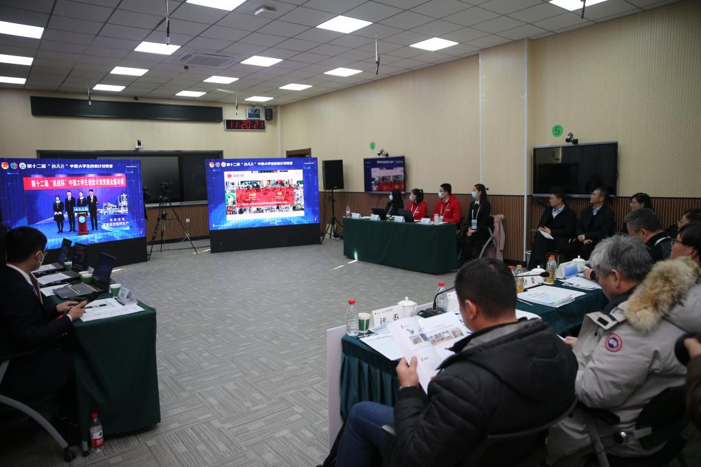 全国决赛终审答辩通过线上形式举行,参赛项目通过线上平台参与答辩,评审现场设在我校,七十余位评审专家分别在14个评审室参与评审。田小飞副部长一行深入各组别评审室,实地查看和观摩参赛项目答辩情况,了解参赛学生关于参赛项目的介绍和陈述,以及评委问辩情况。赛前,田小飞副部长深入评审室,实地调研指导决赛组织筹备工作,详细了解评审室场地布置、设备保障情况、评审室工作人员操作流程,以及各参赛项目网络答辩模拟测试情况。他强调,要精心做好大赛决赛终审答辩的各项筹备工作,做好相关应急预案,确保网络答辩万无一失,高质量、高标准、高要求完成决赛组织工作。李斌校长、雒文虎副校长分别从场地设施、人员保障、后勤保障、应急预案,以及会务接待等方面汇报了我校组织全国决赛终审答辩的各项筹备情况。