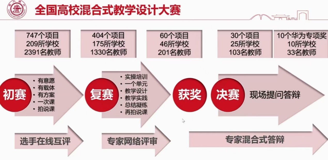 本届大赛是中国高等教育学会《全国普通高校教师教学竞赛分析报告》和《全国普通高校教师教学发展指数》的数据统计源,是衡量高校教师教学发展生态的重要指标之一。大赛由上海交通大学、北京大学、复旦大学、西安交通大学、哈尔滨工业大学、武汉大学、华东师范大学、四川大学、西安电子科技大学九所高校,以及广东省本科高校在线开放课程指导委员会、高校教学发展网络(CHED)联合主办,华为技术有限公司协办。大赛以“以赛促建、以赛促用、以赛促教改”为宗旨,挖掘、培育并展示教师的课程建设、教学设计等成果,激励教师不断创新,将课程建设与课堂教学实践紧密结合,推动线上线下混合式教学改革,不断提高教学质量。