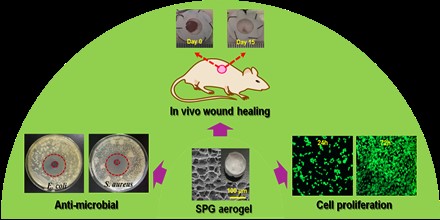 黄占华教授研究团队利用简单的冻融循环和冻干成型技术构建海藻酸钠/氧化石墨烯/聚乙烯醇纳米复合海绵(SPG)(图1)。SPG纳米复合海绵呈现均匀多孔且相互连通的三维网络结构,具有良好的吸水性、透气性和力学性能。适量氧化石墨烯的加入可以改善SPG的机械性能、生物活性和药物的持续释放,可促进细胞粘附和增殖,减少疤痕的生成,且不会诱导细胞毒性。解决了海藻酸钠基伤口敷料机械性能差、载药控释效果不理想以及促进细胞增殖效果不明显的问题。论文通过缓释实验、细胞实验以及动物实验等系统地评价了SPG的使用安全性和促伤口愈合效果(图2)。