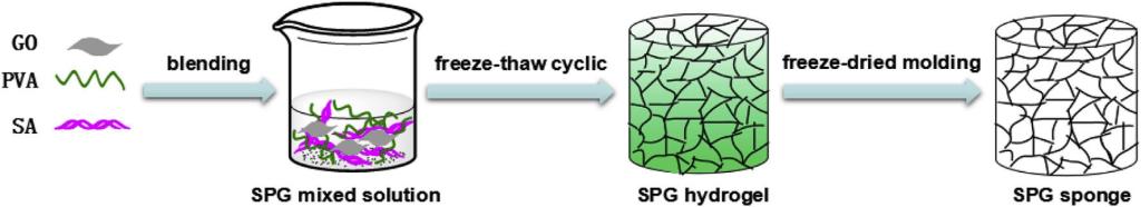 图1 SA/GO/PVA纳米复合海绵的制备示意图。