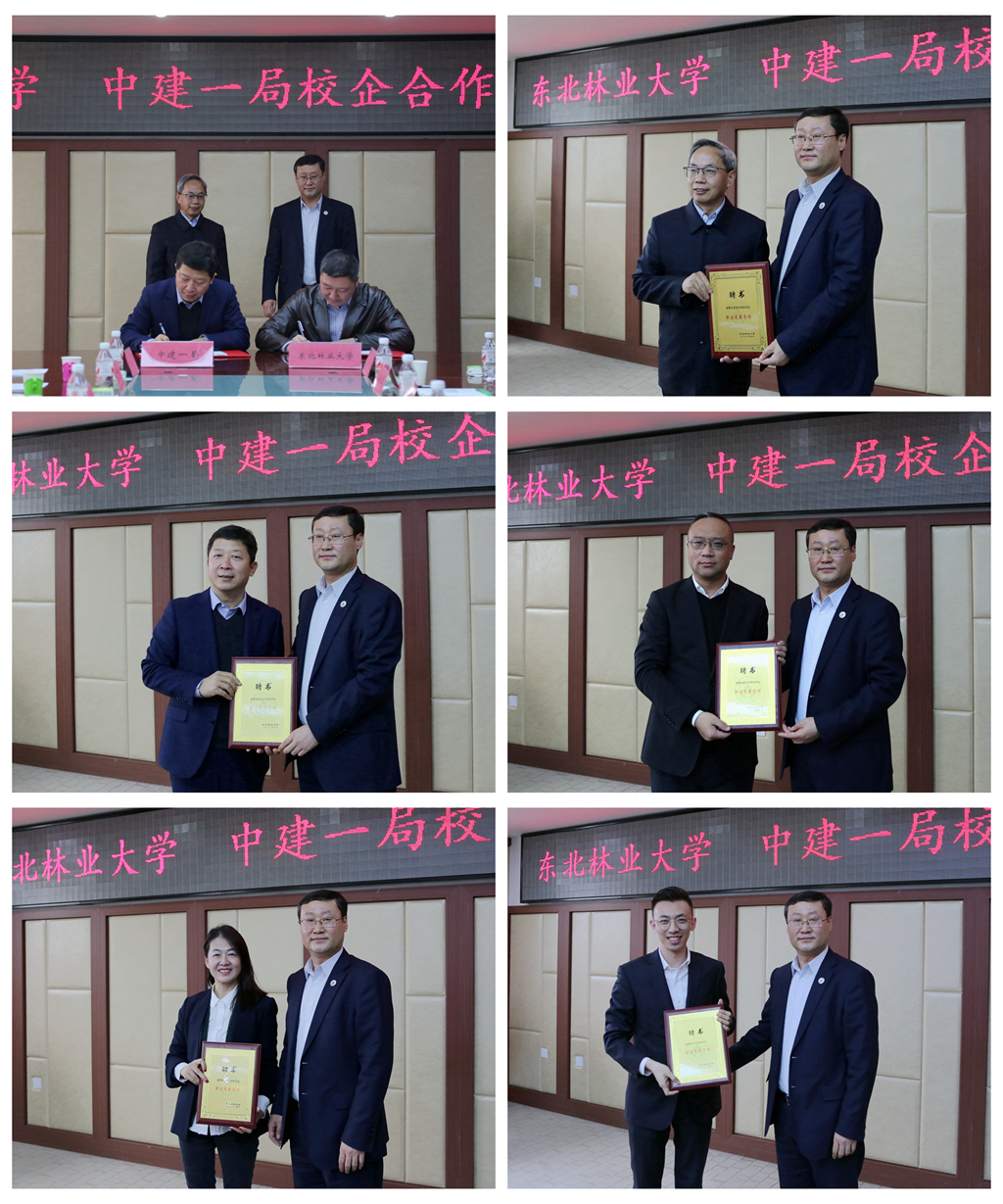 随后,校企双方签署了校企战略合作协议,宋文龙副校长和王希强共同为“实习就业基地”和“人才培养基地”举行揭牌仪式,宋文龙副校长代表学校向中建一局(集团)有关领导和校友颁发学生职业发展导师聘书。