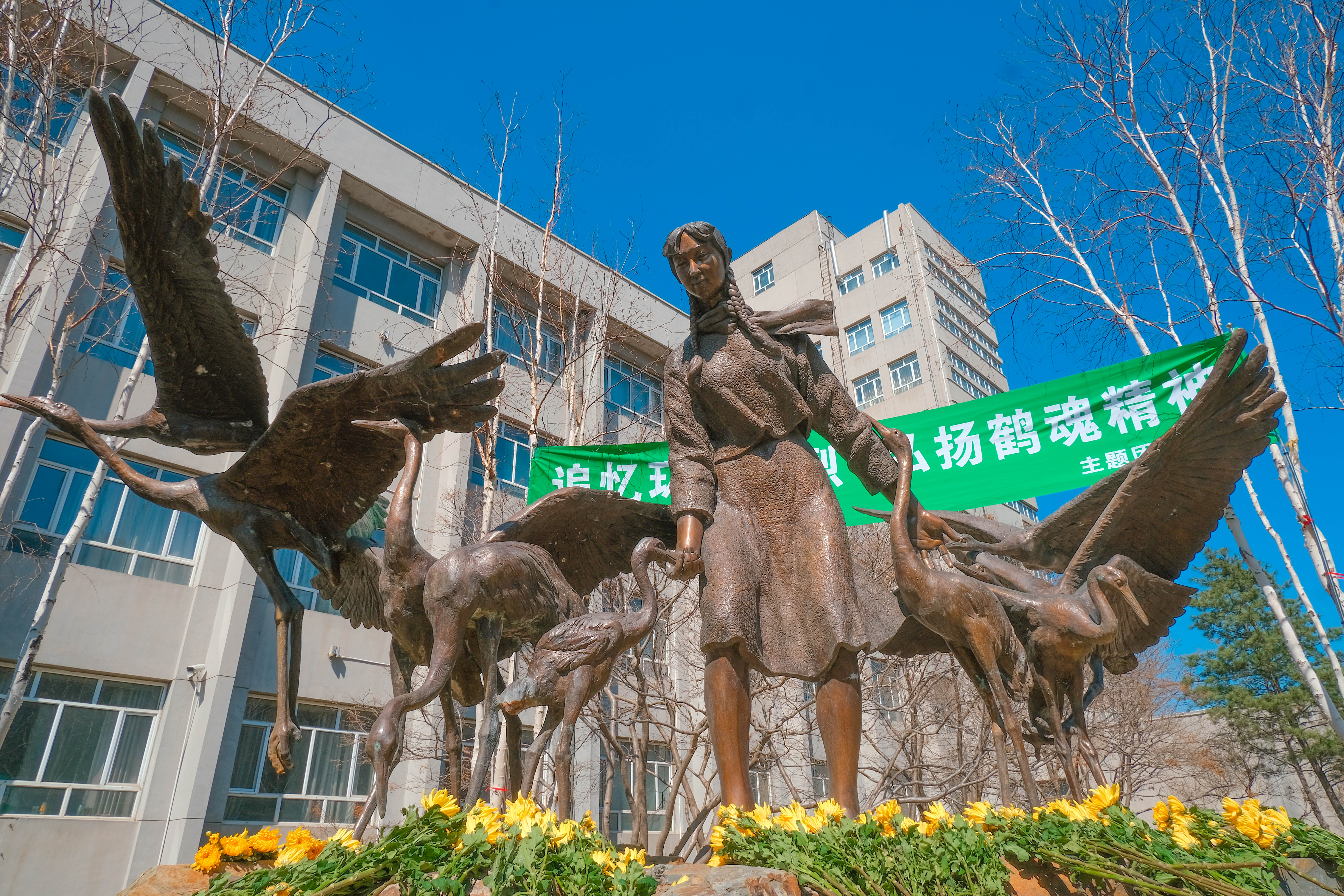 文法学院2020级广告学2班林晴同学满怀深情地说道:“我们站在徐秀娟烈士的塑像前,追忆她的生平事迹,感悟到了鹤魂精神的力量。正如在迎新晚会上看到的短剧《鹤娘》和第十二届“挑战杯”闭幕式节目《一个真实的故事》中所展现的那样,徐秀娟烈士对于养鹤事业的投入、对于丹顶鹤等动物的喜爱以及为了事业勇于献身的崇高品格,都值得我们学习。”