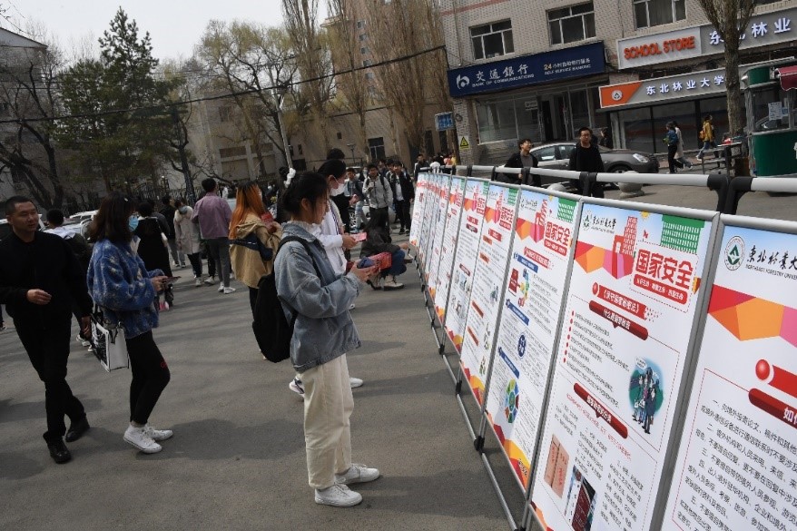 4月15日,在东北林业大学在食堂门口举办了“国家安全,人人有责”的国家安全宣传展,会场设立了相应的宣传板和签字墙,宣传工作人员分发印有国家安全知识的折页材料。折页图文并茂,介绍当前国家安全面临严峻形势,宣传了公民应该具备的整体国家安全观,强化东林学子的忧患意识和责任担当。吸引了大批学生驻足观看,起到了良好的宣传效果。