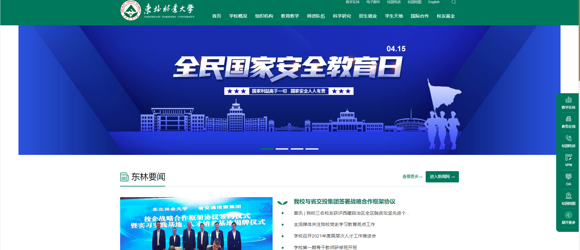 学校在校园网主页、新闻网重要位置刊发全民国家安全教育日的大图,并链接到共产党员网的全民国家安全教育日的相关网页,网页内容包括习近平总书记关于总体国家安全观的论述、PPT课件等内容,引导师生牢固树立和认真贯彻总体国家安全观。