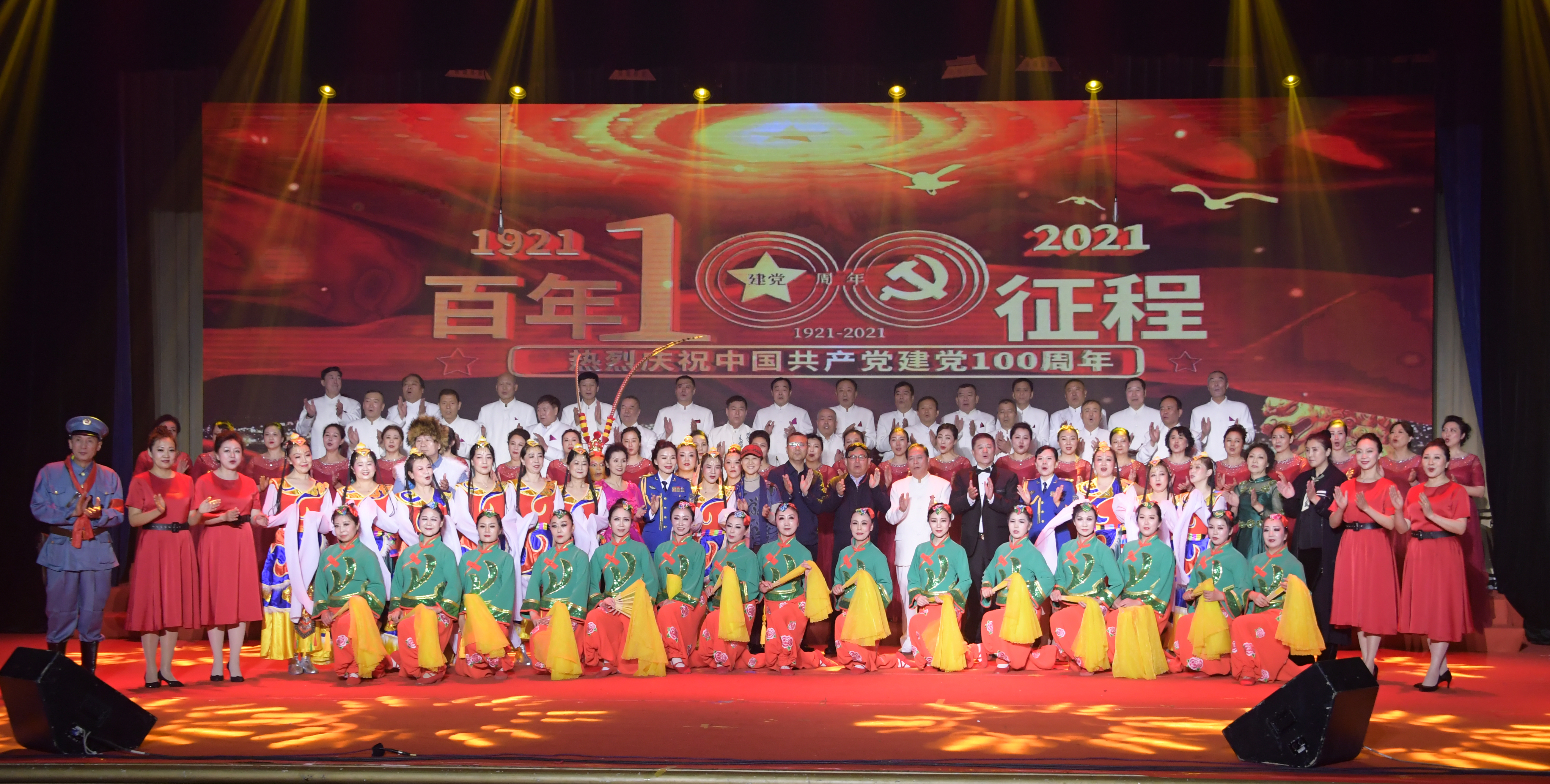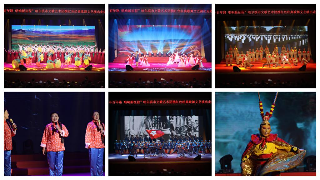 随后,本场演出在慷慨激昂的《没有共产党就没有新中国》大合唱中,拉开了帷幕。接下来的表演中,有合唱《工农兵联合起来》的同心同力和《在希望的田野上》的美好愿景,有歌伴舞《过雪山草地》的威武不屈和《江山》的豪情壮志,有歌曲《北大荒人的歌》的奋不顾身和《领航新时代》的壮丽诗篇,有朗诵《四渡赤水出奇兵》的钢铁意志和舞蹈《芳华》的蓬勃气息……整场演出中,节目精彩纷呈、内涵深刻,引得现场观众赞口不绝、掌声不断,演出在我省著名表演艺术家张千老师的《美猴王表演》中落下了帷幕。