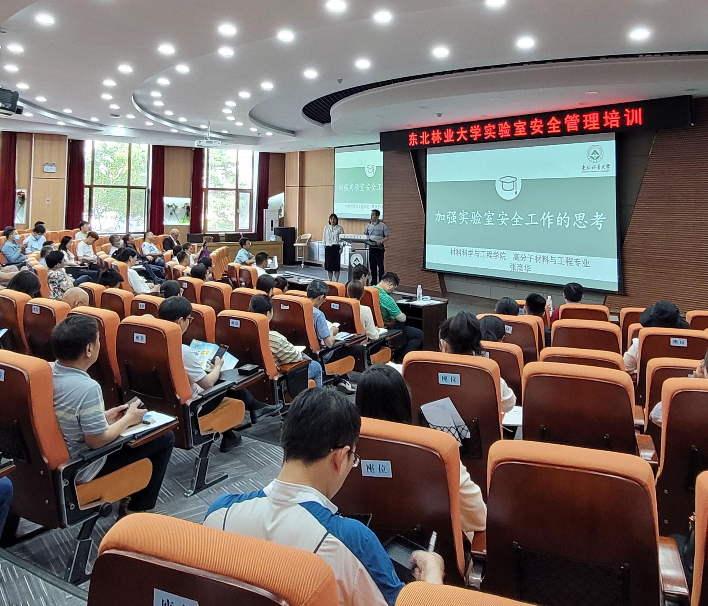 林学、材料、化资等分管实验室工作的学院领导,校级实验室安全督查员、实验室管理与条件保障处全体同仁及部分师生共计100余人参加了此次培训。培训会上实验室管理处为师生发放了实验室个人安全防护及应急手册和实验室安全文化形象—松鼠“安安”的标识。