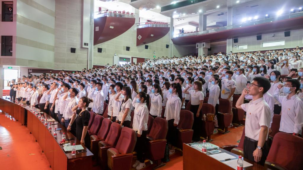 为进一步巩固党史学习教育成果,激发毕业生党员的使命担当意识,向即将到来的中国共产党成立100周年献礼,6月24日下午,学校在科学会堂举行“青春心向党 奋进新征程”2021届毕业生党员重温入党誓词主题党日活动。学校党委书记张志坤出席活动并讲授了党课,学校党委常委、副校长雒文虎,各学院党委副书记,毕业生辅导员和2021届毕业生党员代表共700余人参加活动。活动由党委学工部部长、学生处处长、武装部部长王博主持。