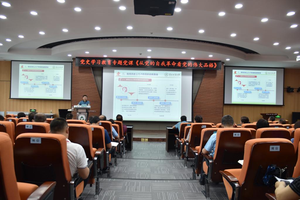 翟雪峰围绕习近平总书记提出的“勇于自我革命,是我们党最鲜明的品格,也是我们党最大的优势”,从自我革命的内涵、我党历史上几个阶段的自我革命、从自我革命看我党的伟大品格、自我革命的现实意义四个方面,深刻阐释了党的自我革命的重大历史和现实意义。
