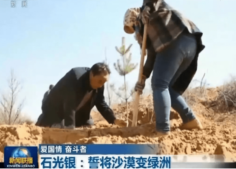 为了筹措买树苗的资金,石光银拿出所有积蓄,卖掉家里的84只羊和1头骡子,还四处借贷。最终他联合了7户村民,正式开始了治沙事业。