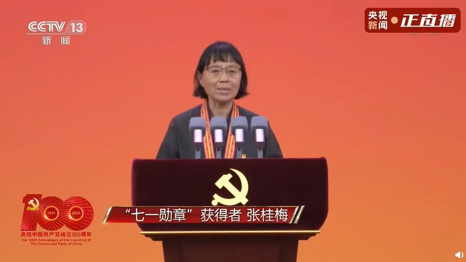 大家好!我叫张桂梅,是一名普通的人民教师。习近平总书记将代表党内最高荣誉的“七一勋章”授予我们29名同志,这份光荣属于奋战在各条战线上的每一名共产党员。请允许我代表今天受到表彰的同志们,感谢党中央对我们的充分肯定,感谢广大党员群众对我们的支持和信任!