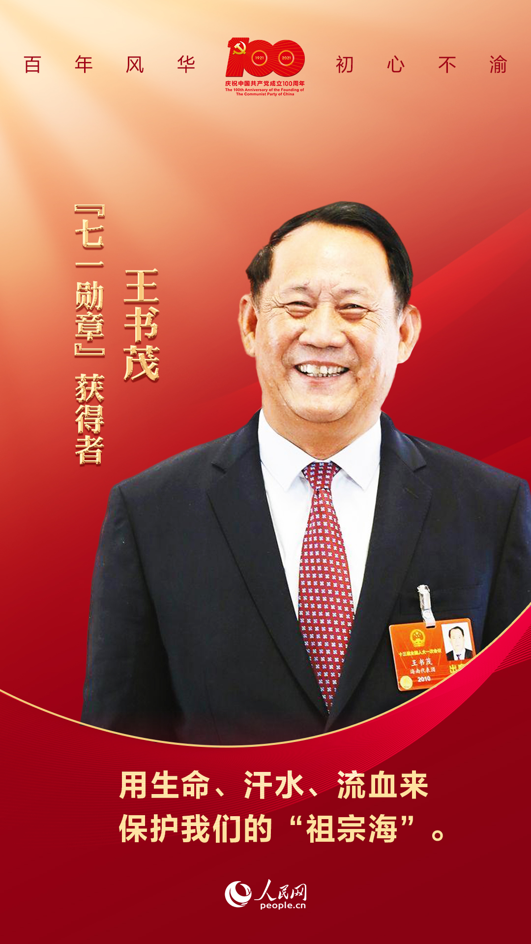 今年62岁的王书茂,一辈子身体力行维护南海领土主权,为保护海洋权益作出了突出贡献。作为一名党员、民兵干部,他带领渔民勇闯远海捕鱼作业,成为潭门镇带头致富、带领群众致富的“双带”先进典型,荣获“全国劳动模范”称号。