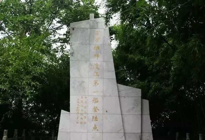 图为位于芜湖板子矶“百万雄狮渡江第一船登陆点”纪念碑