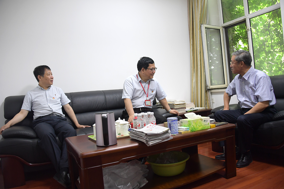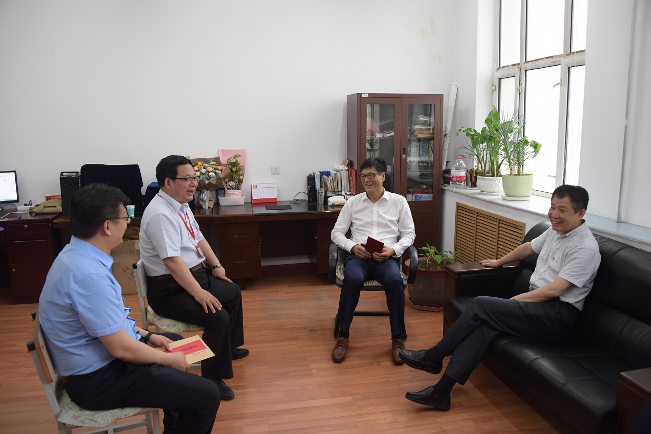 张志坤和李斌来到中国工程院院士李坚教授的办公室。张书记表示,建党100年来,各行各业的共产党人为中国的革命建设和改革作出了卓越贡献,国家为“七一勋章”获得者颁授勋章是至高的荣誉,李坚院士作为我校的科研领军人物,为学校的科研事业和各项发展作出了巨大贡献,同样是学校的“勋章”人物。校领导详细询问了李院士的身体情况,了解对学校发展的思路建议;李坚院士兴奋地向校领导展示了最近的科研成果,并现场深情并茂地表达了对党百年生日的祝福,也希望学校把握发展机遇,加强系统性、综合性的谋划,形成鲜明特色,在“十四五”期间阔步前行,取得更好的发展成就。
