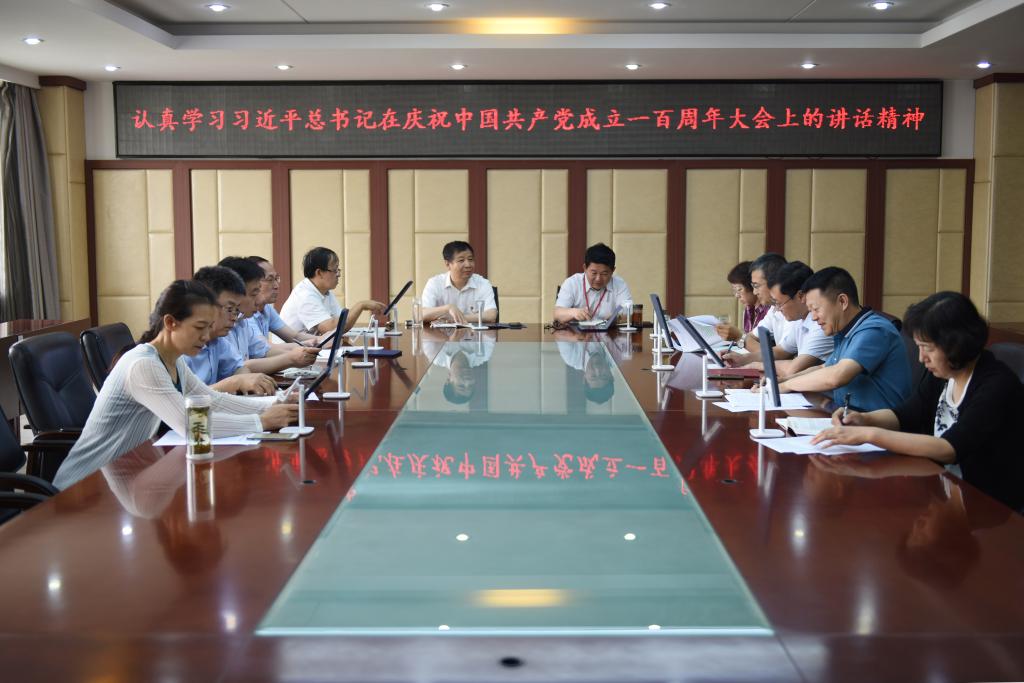 7月2日上午,在前一天集中收看习近平总书记在庆祝中国共产党成立100周年大会上讲话直播后,学校党委理论学习中心组在综合办公楼808会议室专题学习研讨习近平总书记重要讲话。党委书记张志坤主持学习研讨。