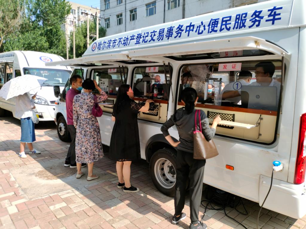 2021年6月26日上午,哈尔滨市不动产登记交易事务中心“便民服务车”来到学校和平小区,这标志着困扰学校多年的教职工住宅不动产登记问题正在逐步解决,当天有58户各项材料齐全的居民办理了相关手续,即将拿到房产证。