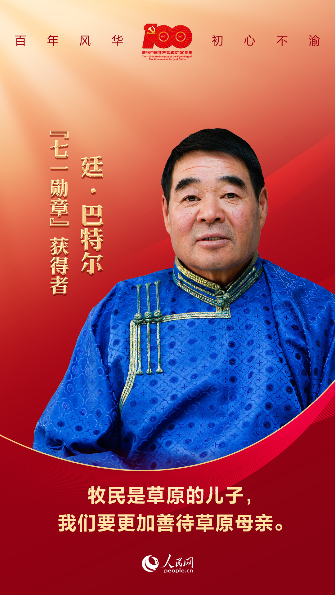 6月29日上午,“七一勋章”颁授仪式上,身着一袭蓝色蒙古族长袍的,正是被称为“草原之子”的廷·巴特尔。