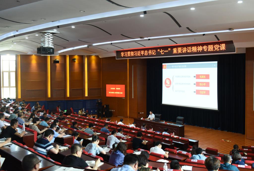 为持续推进党史学习教育走深走实,切实做到学党史、悟思想、办实事、开新局,根据党中央、教育部关于学校党委领导班子成员讲授专题党课的相关要求,按照学校党史学习教育安排,7月20日下午,党委书记张志坤在成栋楼4楼会议室讲授了学习贯彻习近平总书记“七一”重要讲话精神专题党课。在家学校领导,学校中层干部,思政课教师,学校党史学习教育宣讲团成员以及张志坤书记所在支部党员参加学习。专题党课由党委副书记、纪委书记王玉琦主持。