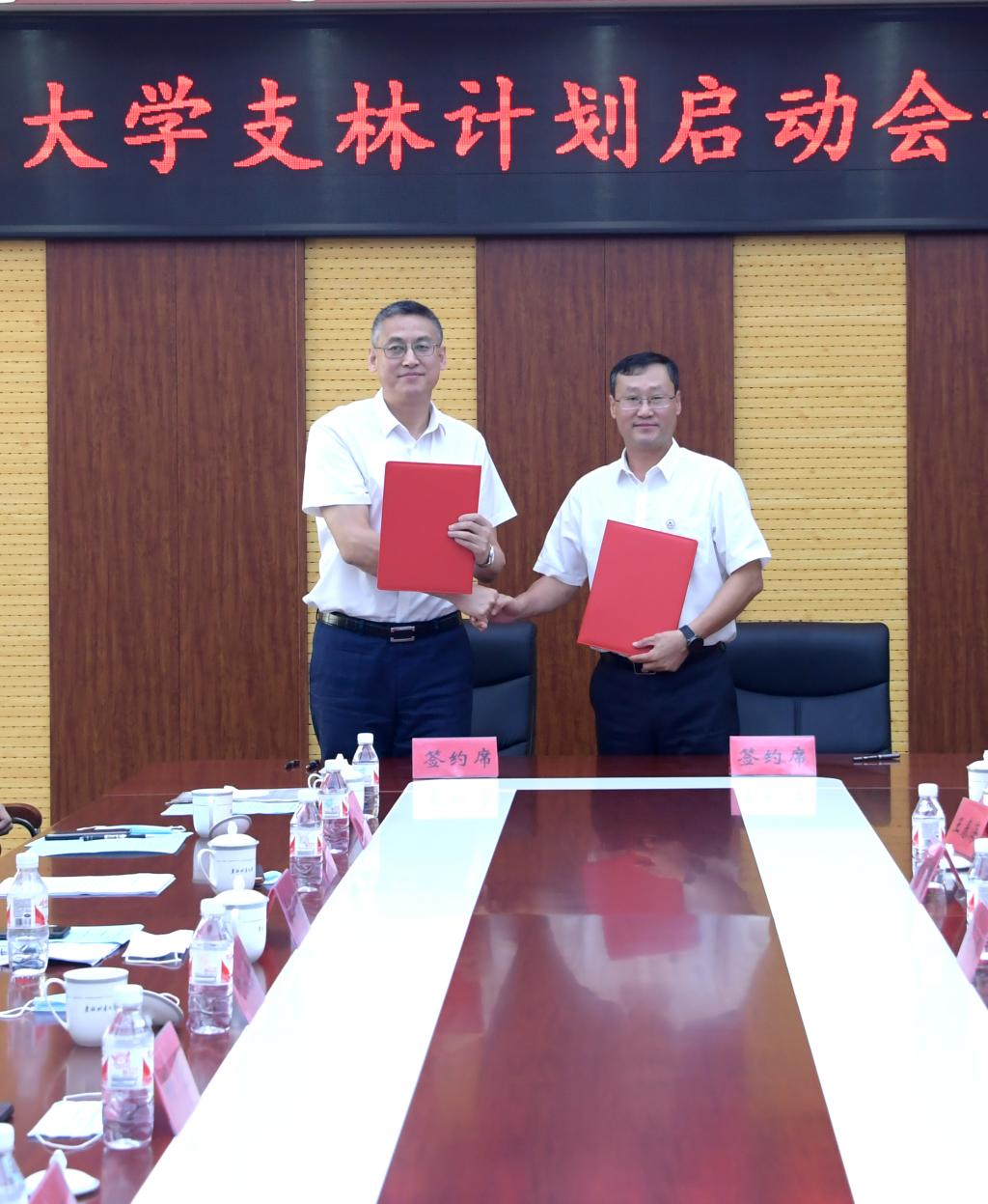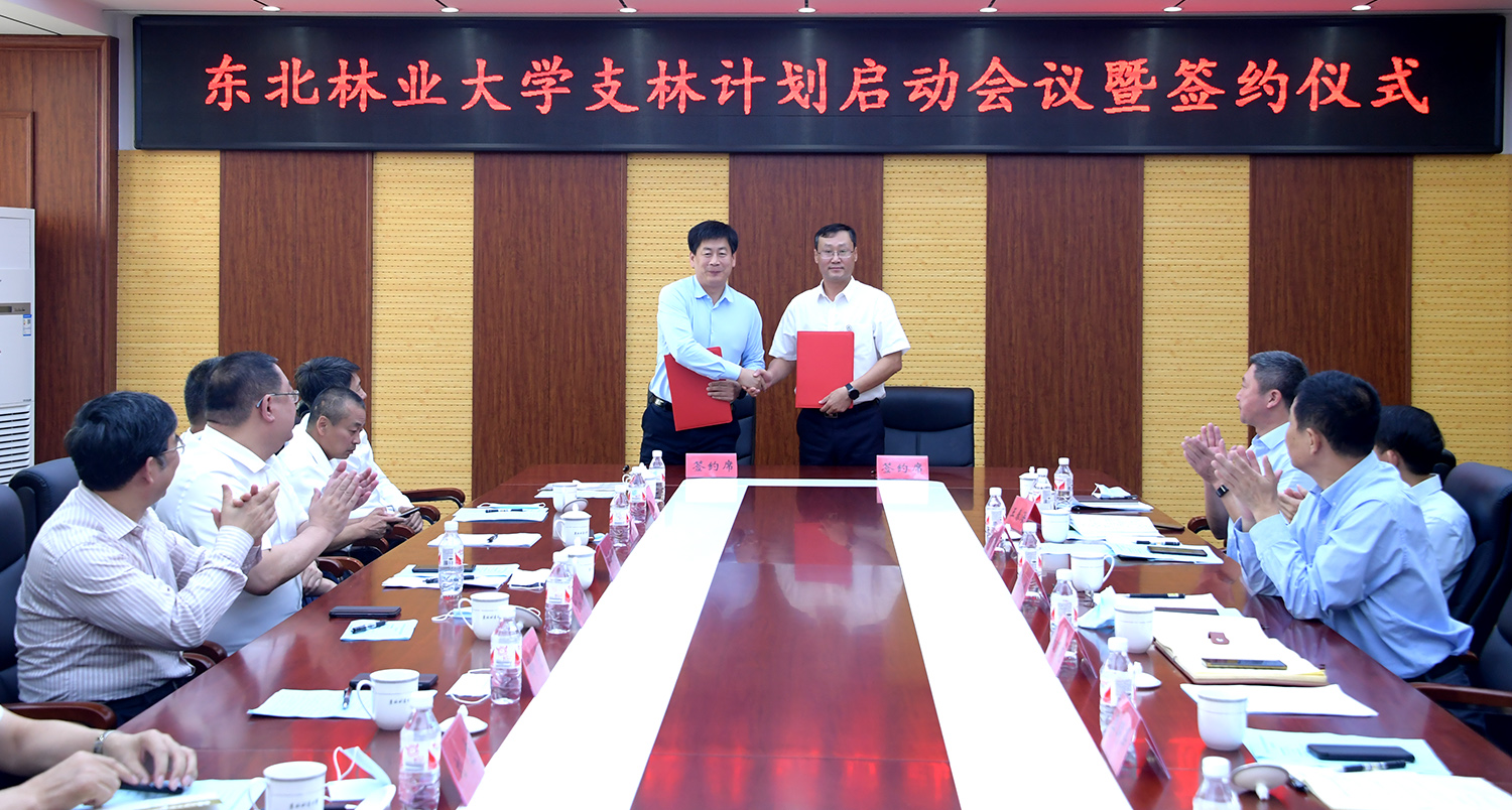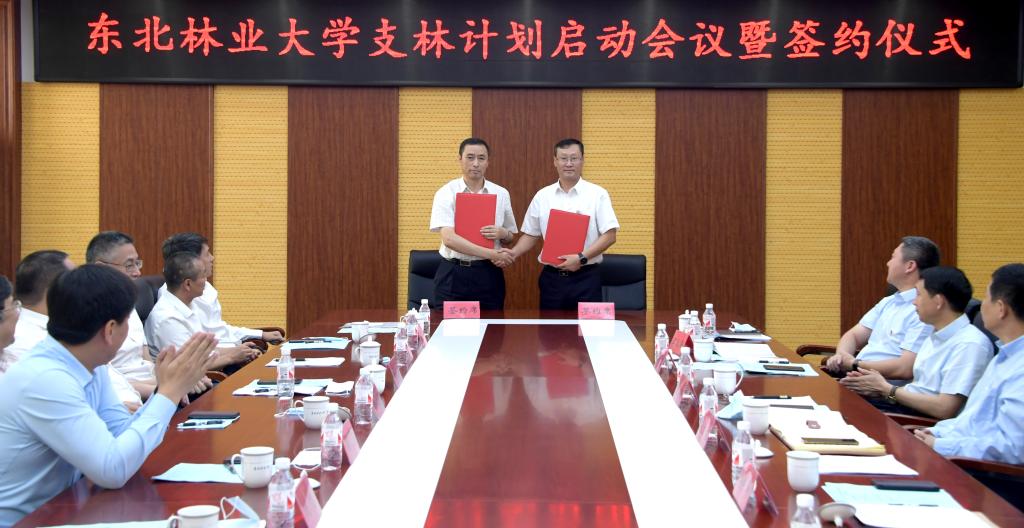 黑龙江省林业和草原局党组成员、副局长时永录,大兴安岭地区行政公署副专员孙亮,中国龙江森林工业集团有限公司党委委员、党委组织部部长赵宏宇,大兴安岭林业集团公司副总经理刘志,东北林业大学党委常委、副校长宋文龙分别代表各方签订了支林计划合作协议。