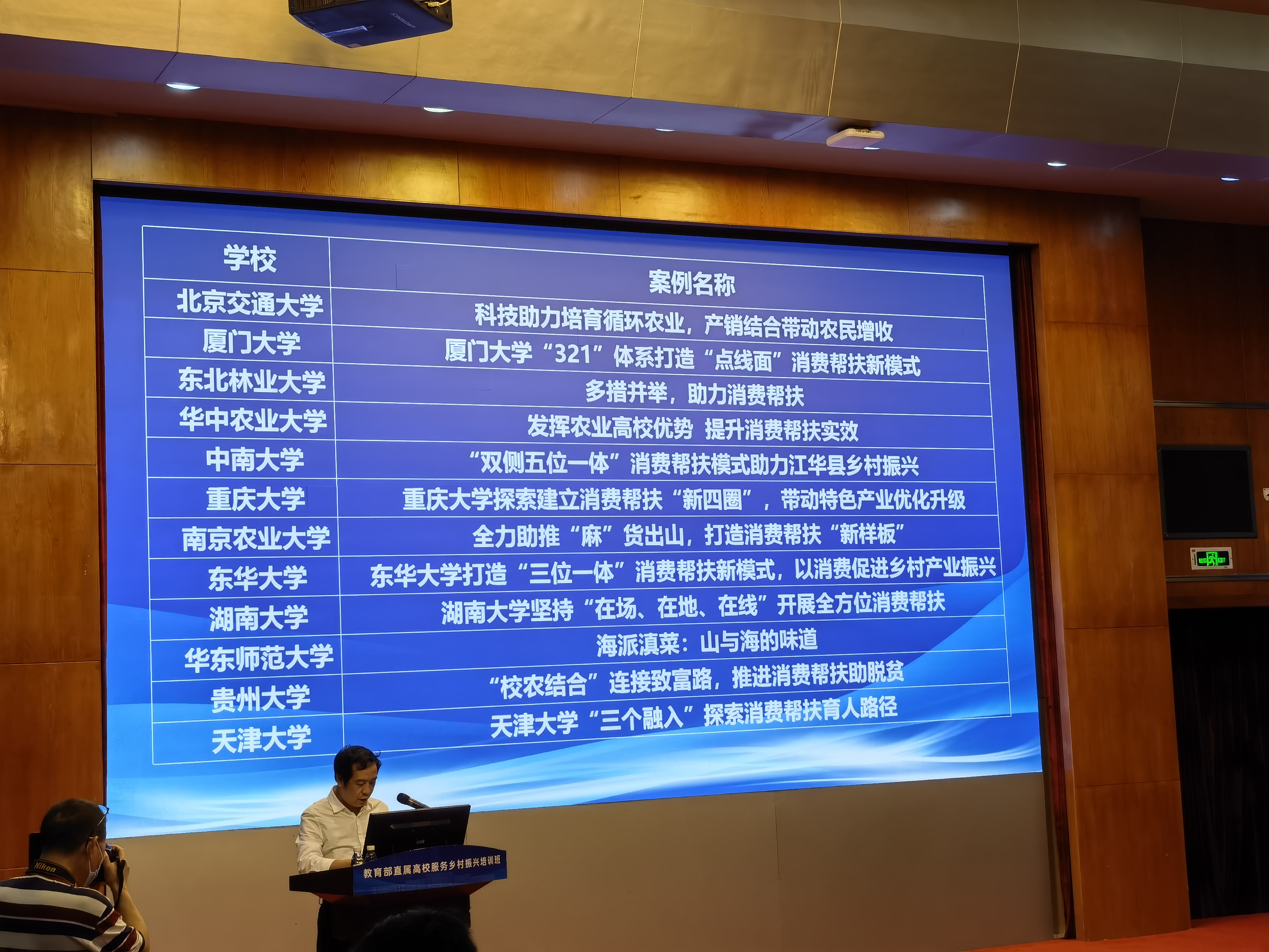 2021年9月14日至9月17日,由教育部发展规划司主办、电子科技大学承办的“教育部直属高校服务乡村振兴培训班”在成都圆满落幕,培训班上公布了第一届“高校消费帮扶典型案例”评选结果。我校“多措并举,助力消费帮扶”案例经过专家组层层评审,成功入选“高校消费帮扶典型案例”,在教育部直属75所高校中仅有12所高校案例成功入选。
