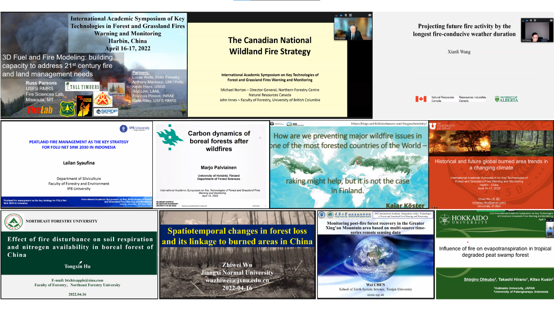 4月16-17日,2022年国际森林草原火灾预警和监测关键技术学术研讨会在线上顺利召开,会议由我校林学院与加拿大不列颠哥伦比亚大学林学院共同承办,森林草原火灾防控技术国家创新联盟协办,来自加拿大不列颠哥伦比亚大学、加拿大国家林务局北方林业中心、美国落基山脉研究中心、犹他大学、赫尔辛基大学、东芬兰大学、印尼茂物农业大学、北海道大学、东北林业大学、应急管理部国家自然灾害防治研究院、中国科学院沈阳应用生态研究所、天津大学、东北师范大学、福建农林大学、江西师范大学、北华大学等高校和科研院所的26名专家学者在大会上发表了精彩报告,报告主题涉及森林草原火格局、森林草原火管理、森林草原火生态和森林草原火预警扑救技术等领域。东北林业大学林学院院长孙龙教授担任会议主席。