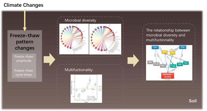 近日,我校东北亚生物多样性研究中心冯富娟团队在土壤学领域经典期刊《Soil Biology and Biochemistry》(中科院1区,TOP)和《Catena》(中科院1区,TOP)上相继发表题为“Meta-analysis of the impact of freeze–thaw cycles on soil microbial diversity and C and N dynamics”和“Fungal Community Diversity Dominates Soil Multifunctionality in Freeze-Thaw Events”的研究论文,分别从全球数据整合分析和实验验证的角度连续报道了冻融对土壤微生物多样性及所介导的碳氮循环功能产生的显著影响。