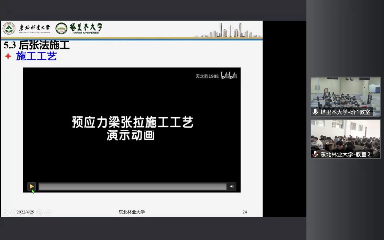 王钧教授和徐嫚老师采用“慕课+课堂直播+线上线下互动”的教学新模式,对“预应力混凝土工程”中的相关知识进行了讲解,主要包括后张法施工和无粘结预应力技术等内容。